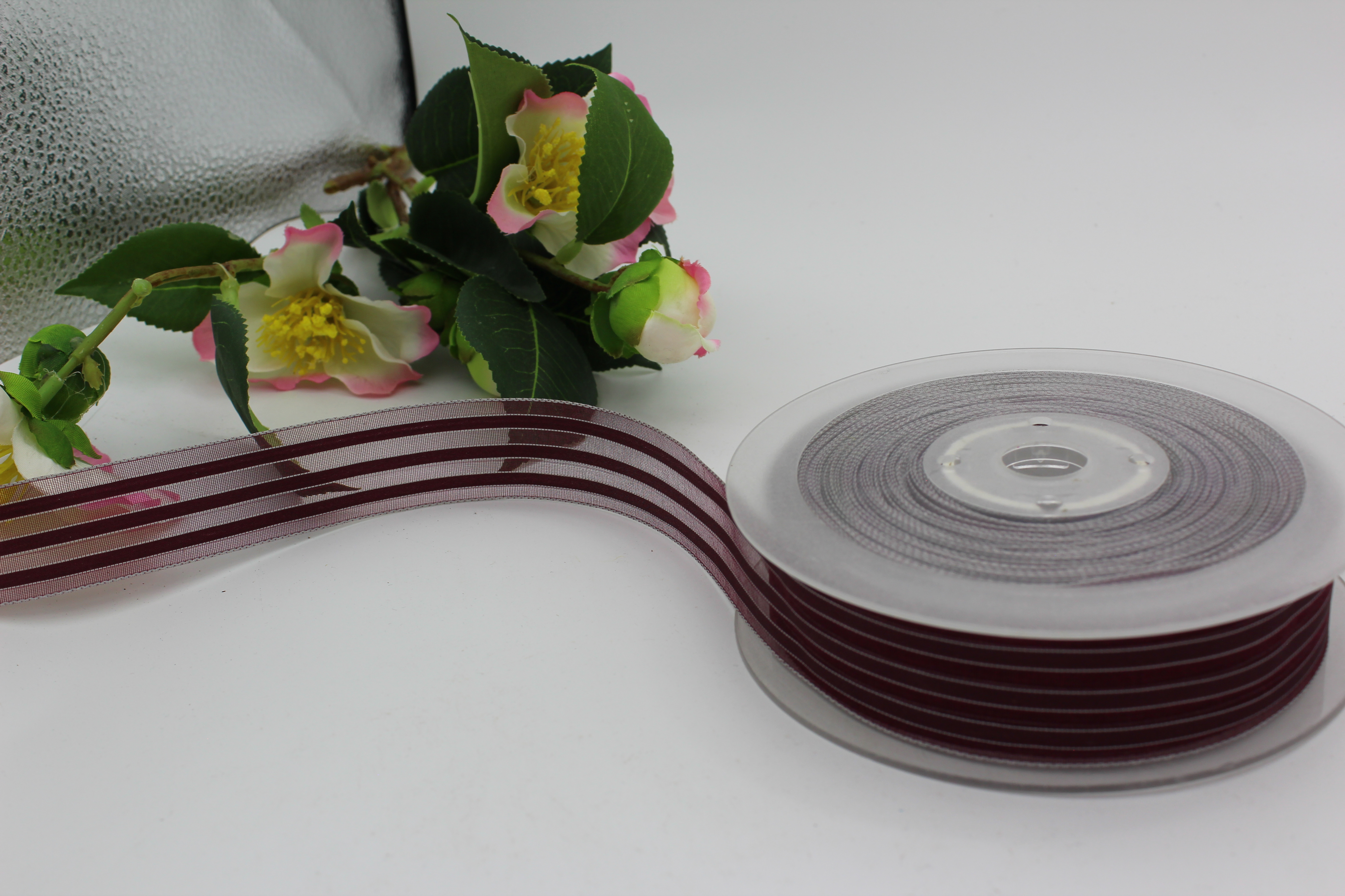 Лента органза 2,5 см 80 ярдов с полосами бордовая