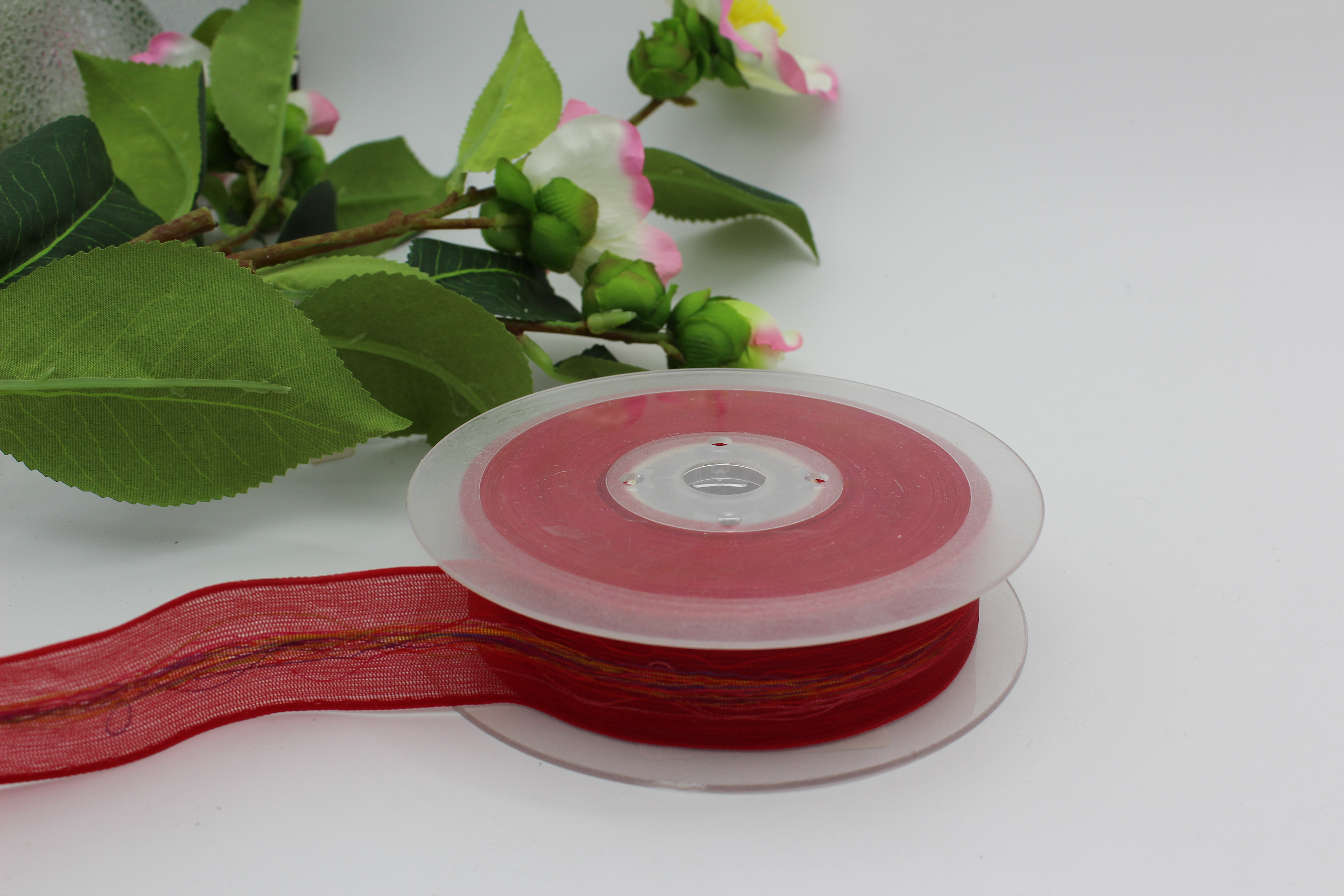 Лента органза 2,5 см 80 ярдов с нитью для рюшечки красная