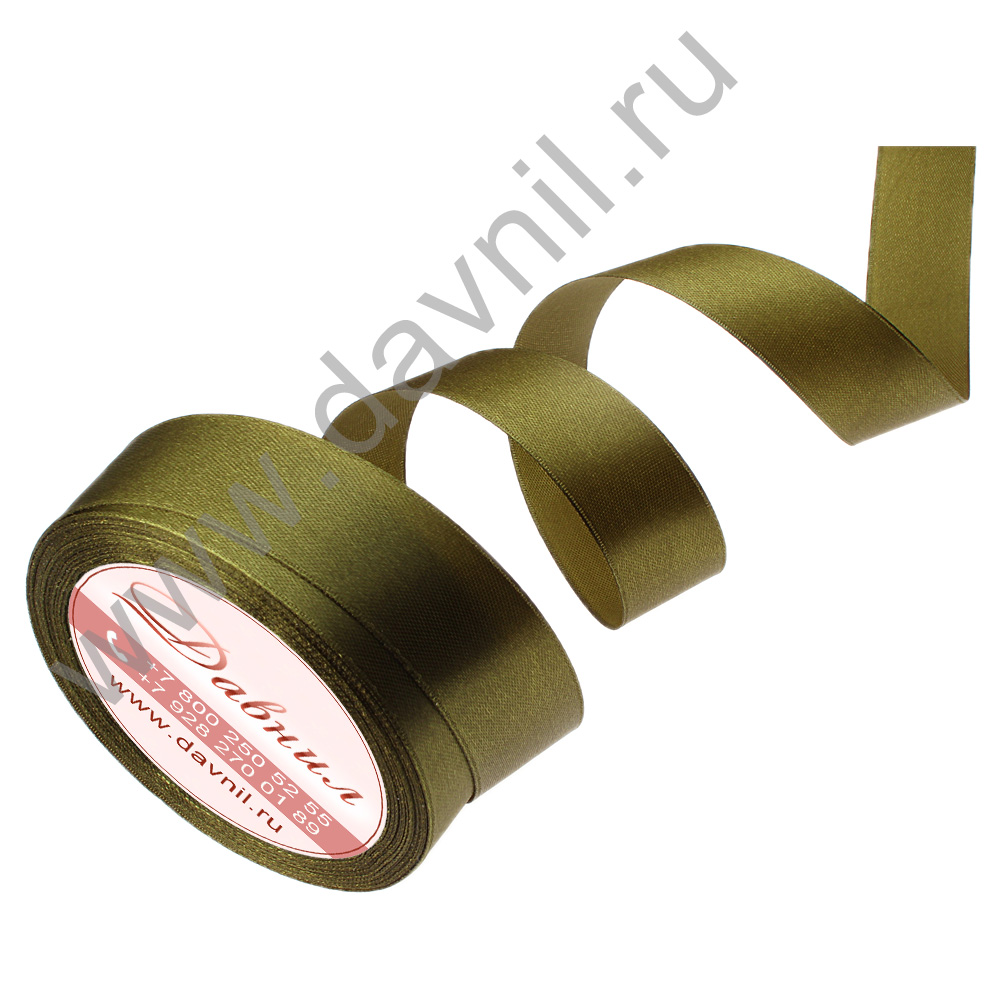 Лента атласная 2,5 см 25 ярдов хаки 055