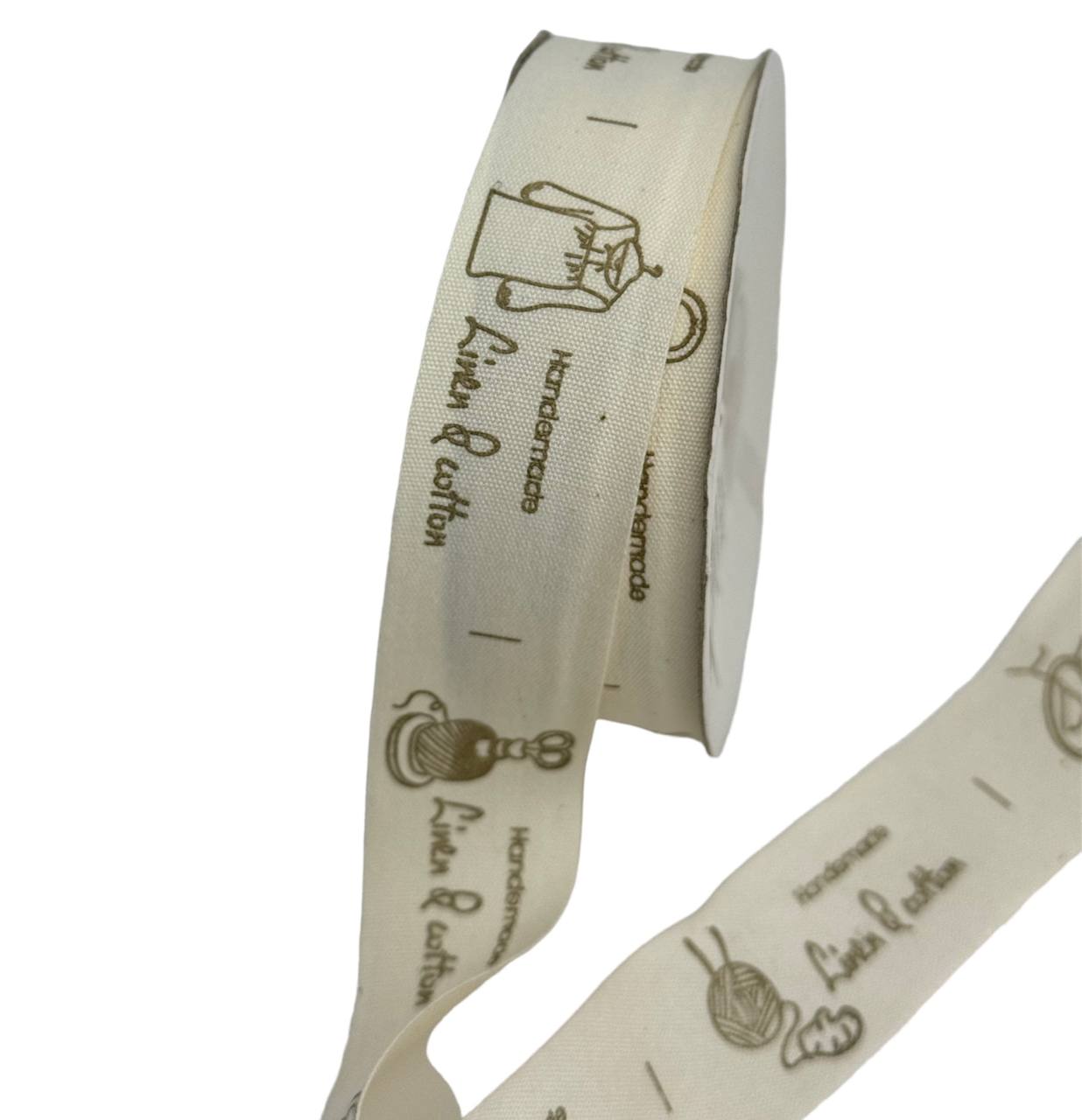 Лента тканевая хлопок 2,5 см 25 ярдов бежевая с надписями ассорти
