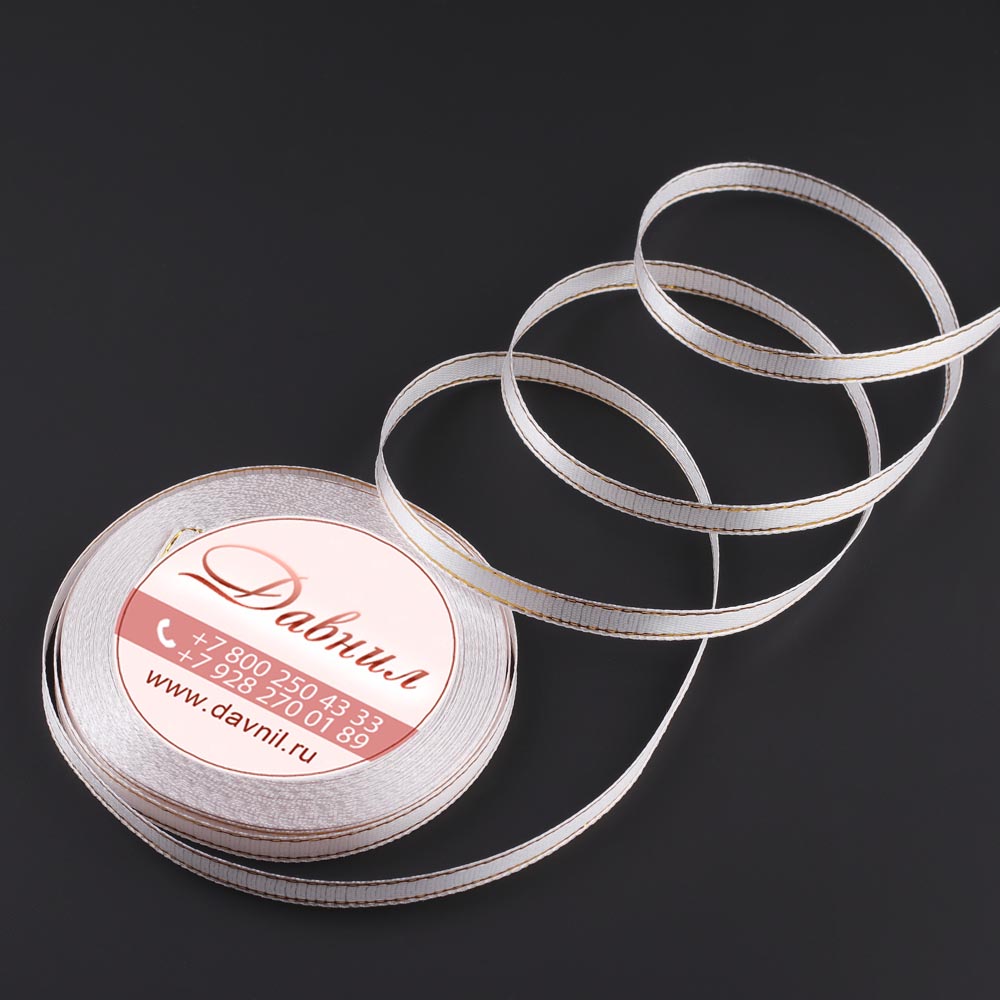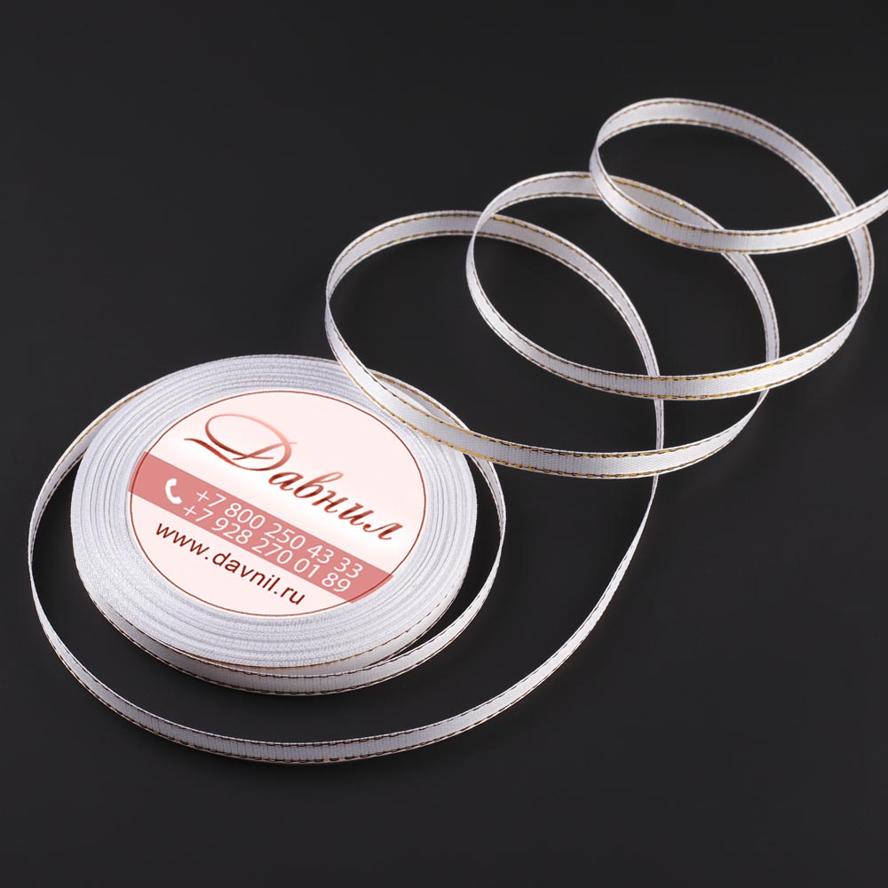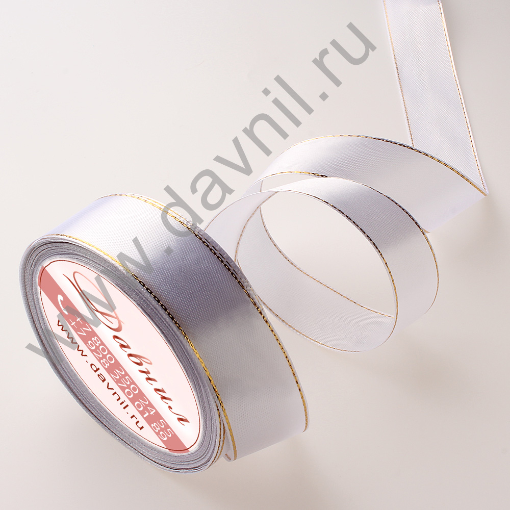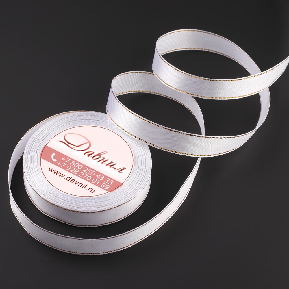 Лента атласная с золотым люрексом 1,5 см 20 ярдов белая 001