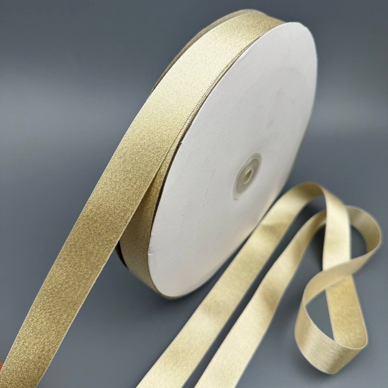 Лента атласная 2,5 см 100 ярдов айвори с золотым люриксом 0002