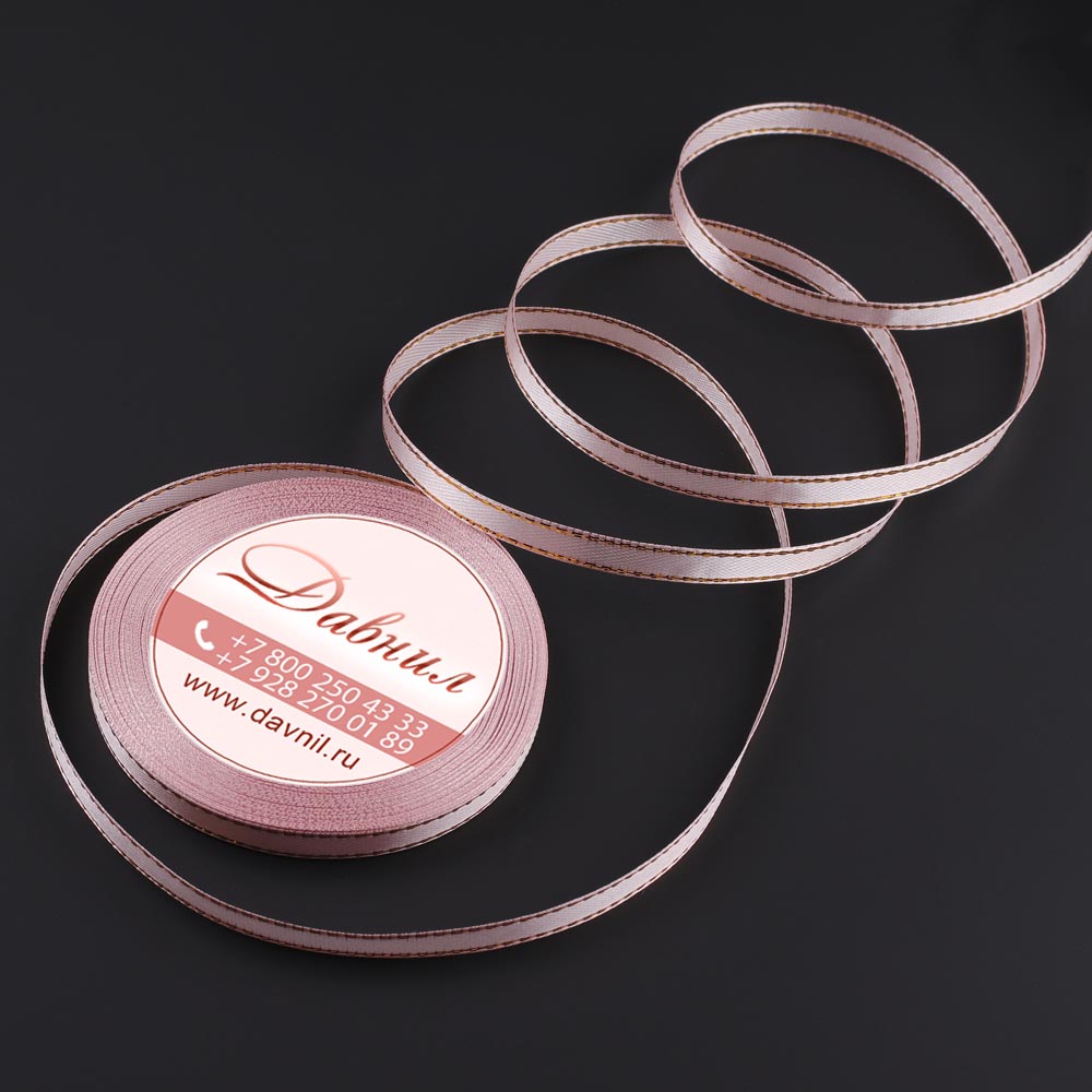 Лента атласная 0,6 см 100 ярдов айвори с золотым люриксом 0002