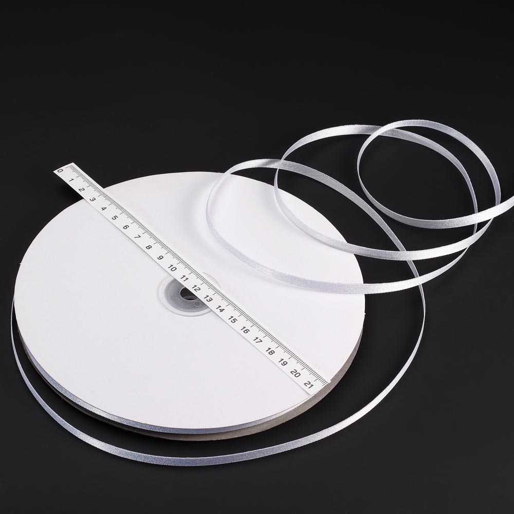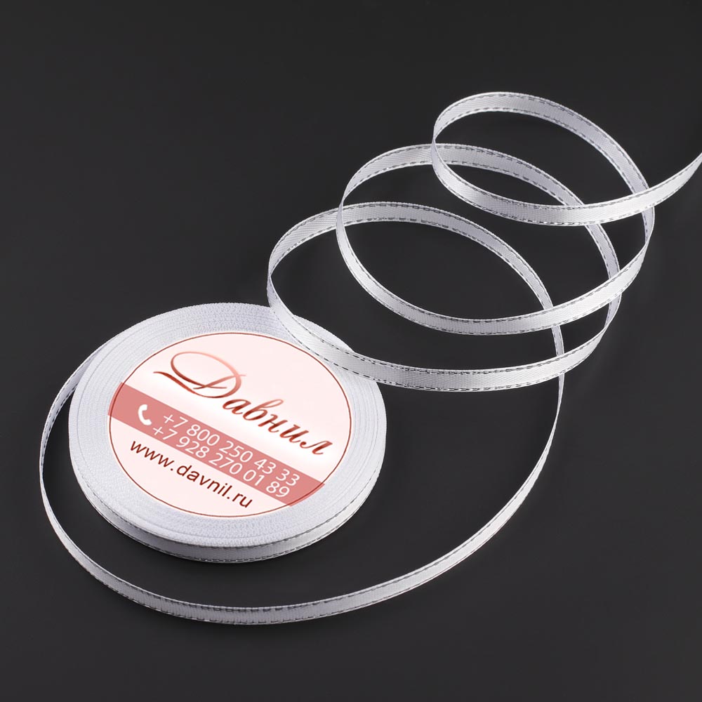 Лента атласная 0,6 см 100 ярдов белая с серебряным люриксом 0100