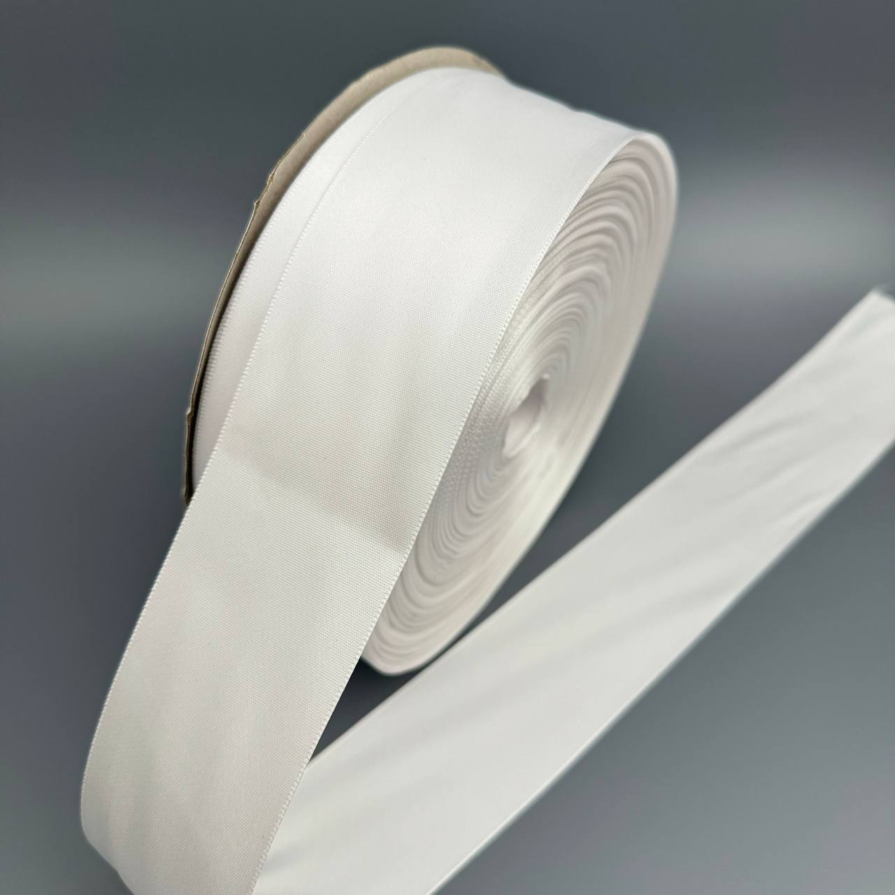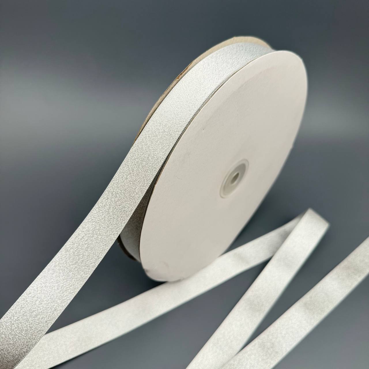 Лента атласная 2,5 см 100 ярдов белая с серебряным люриксом 0100