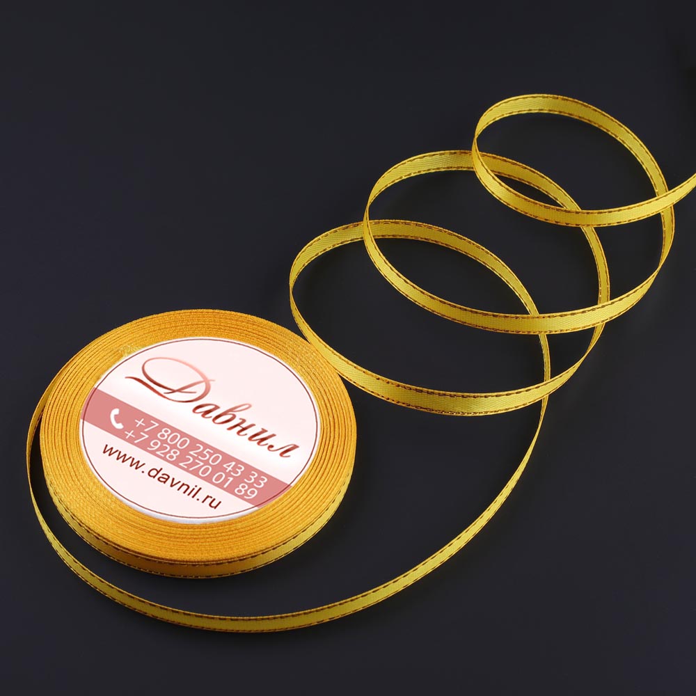 Лента атласная с золотым люрексом 0,6 см*20 ярдов жёлтая 016