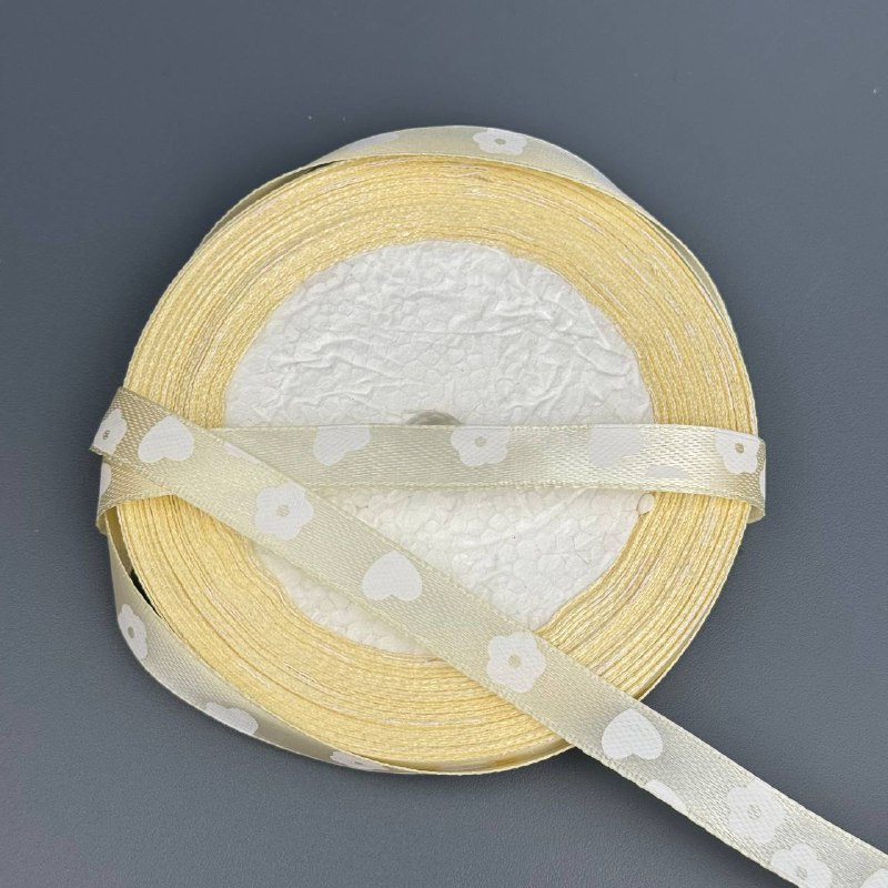 Лента атласная с рисунком 1 см 25 ярд айвори