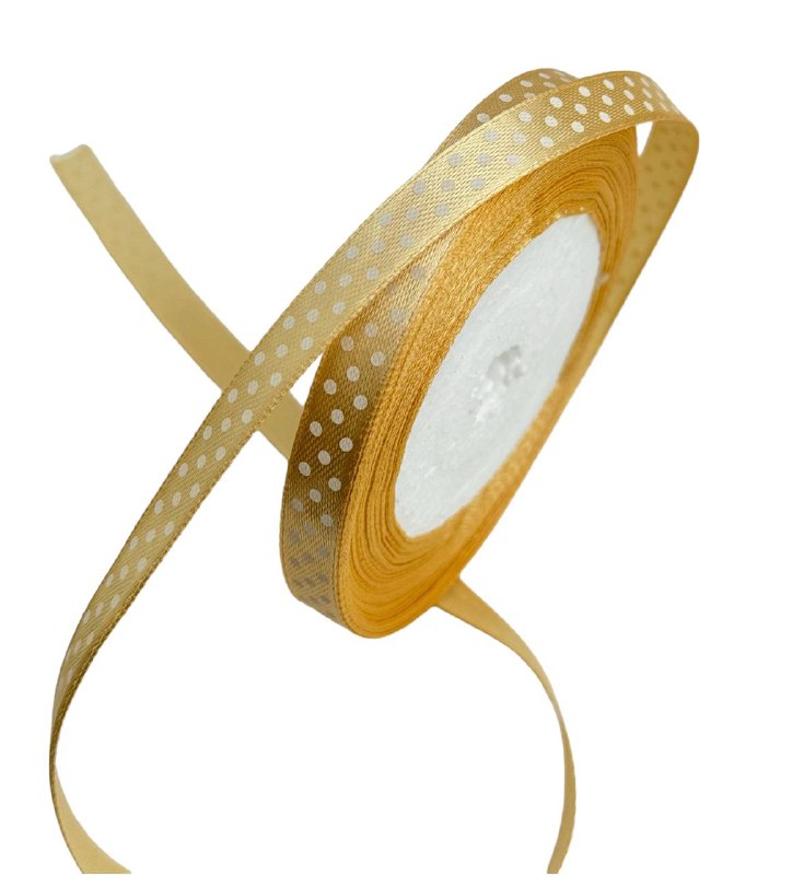 Лента атласная "мелкий горошек" 1 см 25 ярдов бежевая