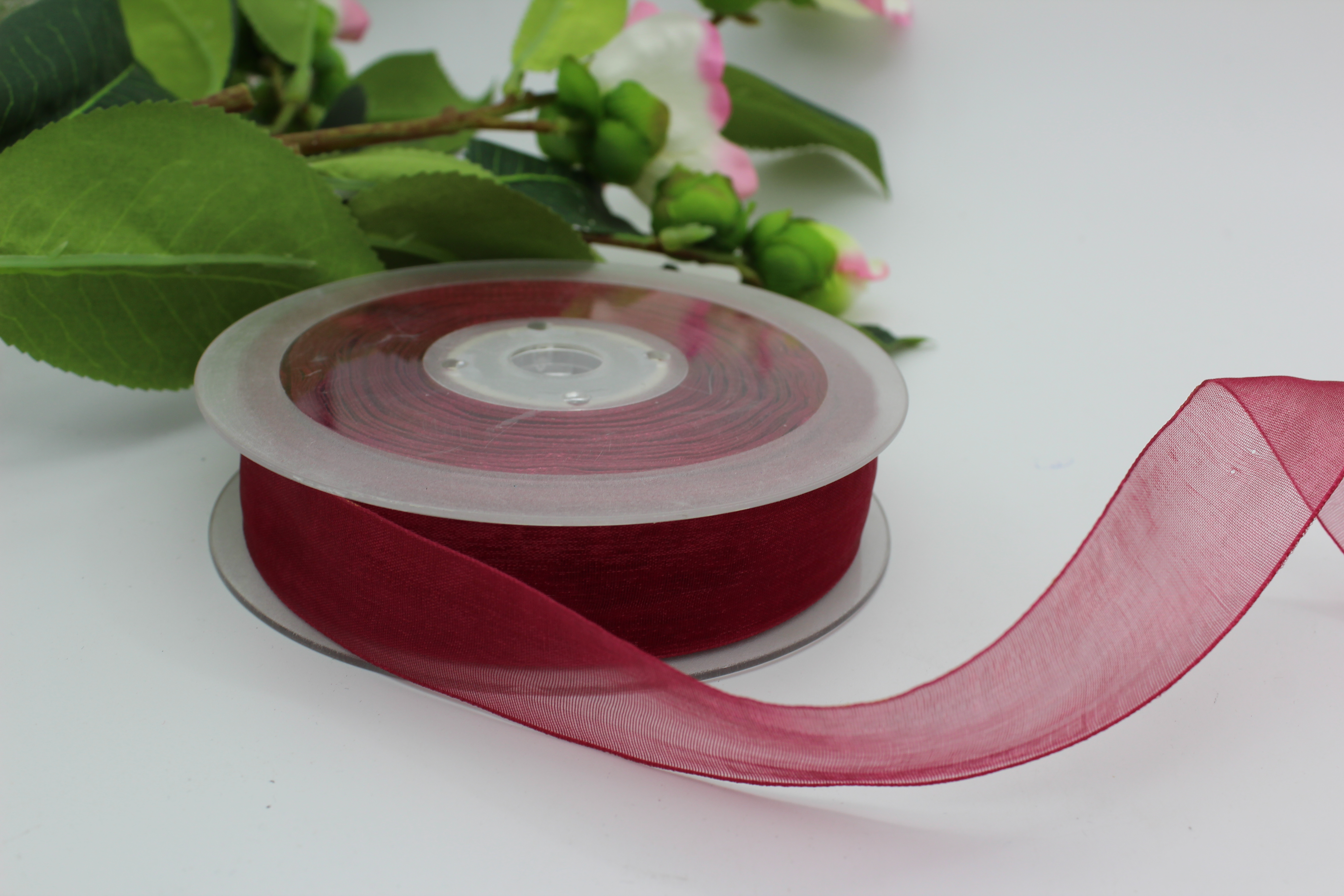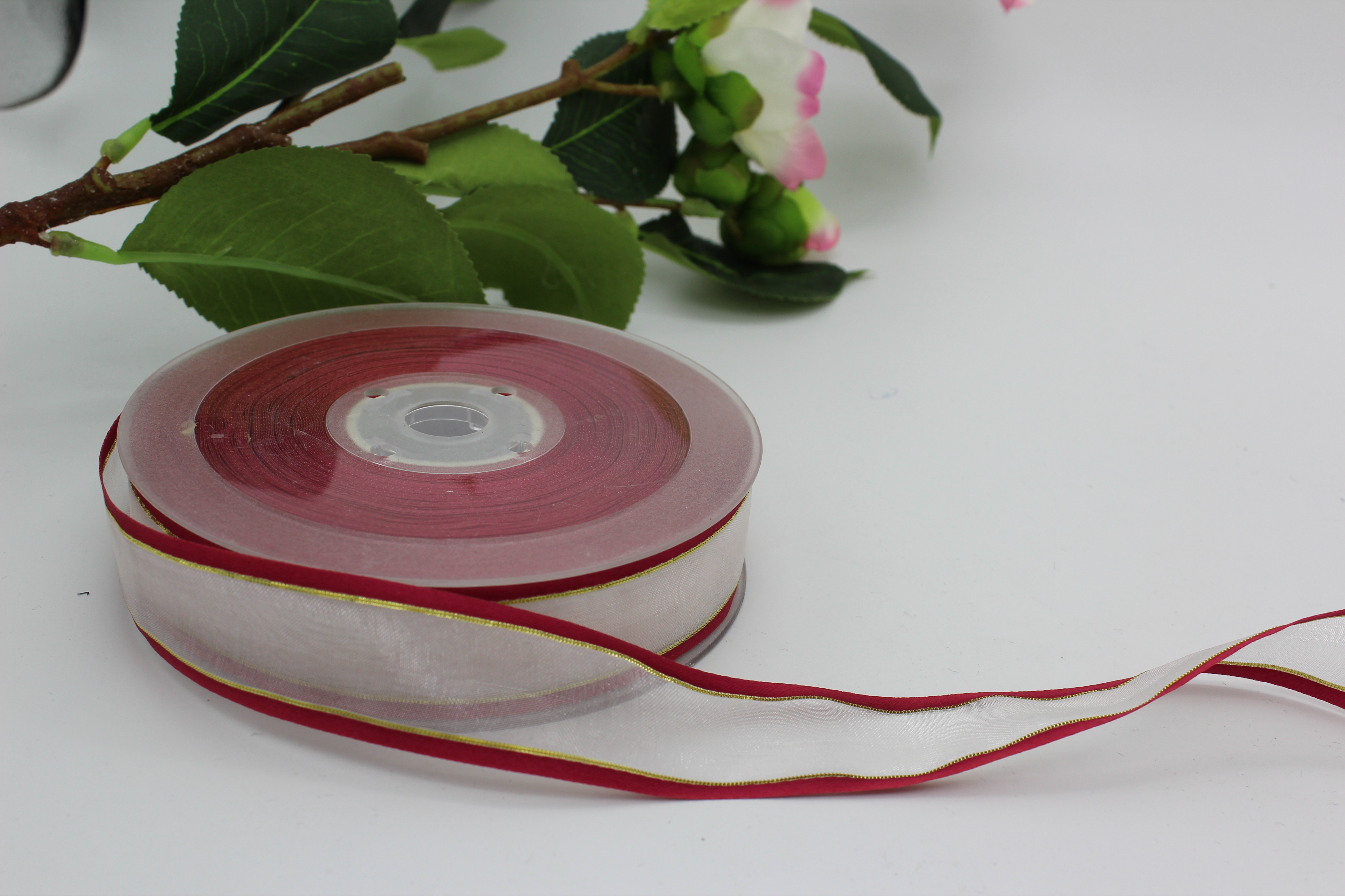 Лента органза 2,5 см 80 ярдов белая с бордовой окантовкой