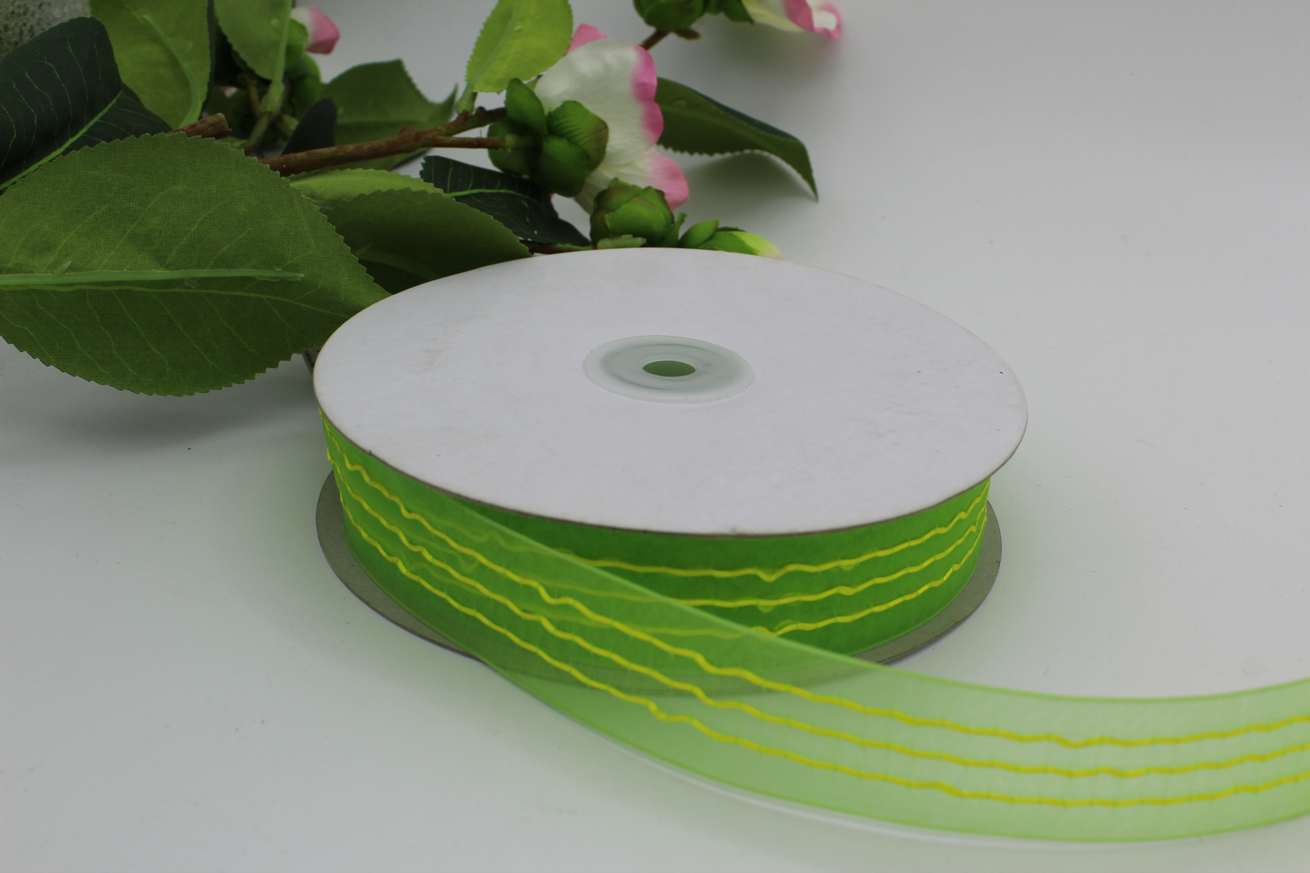 Лента органза 3 см 80 ярдов салатовая с жёлтой нитью