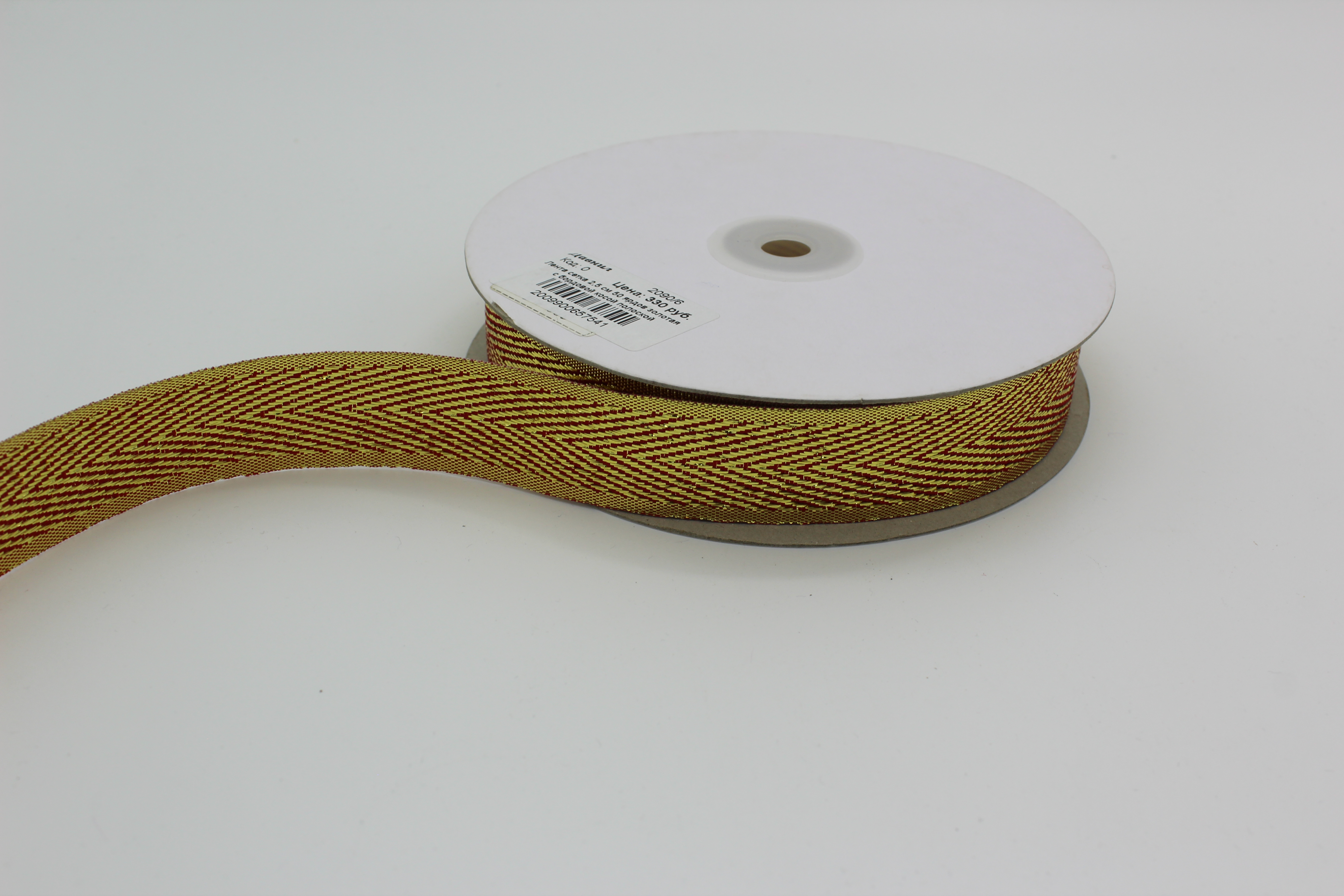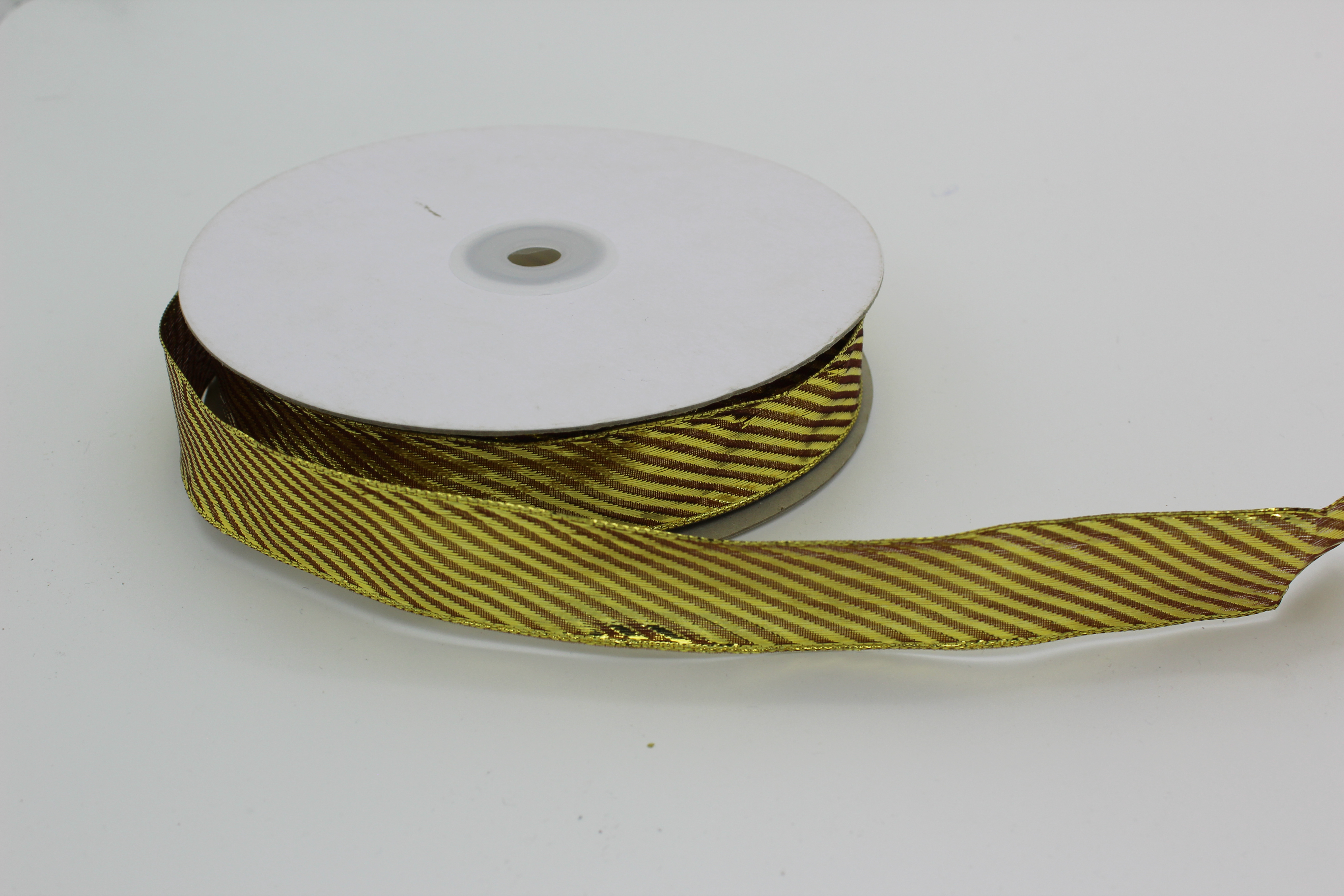 Лента сетка 2,5 см 50 ярдов золотая с бежевой косой полоской