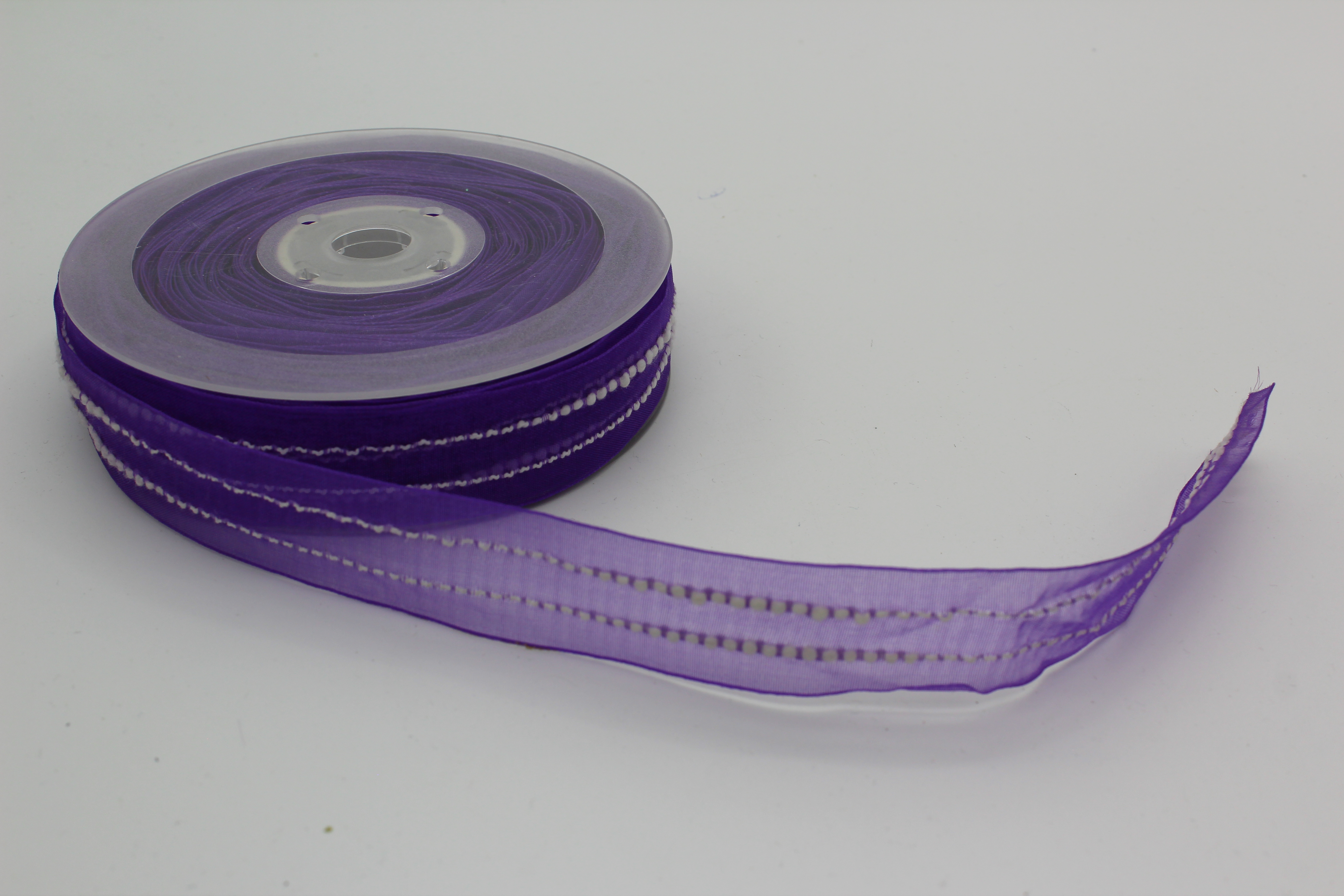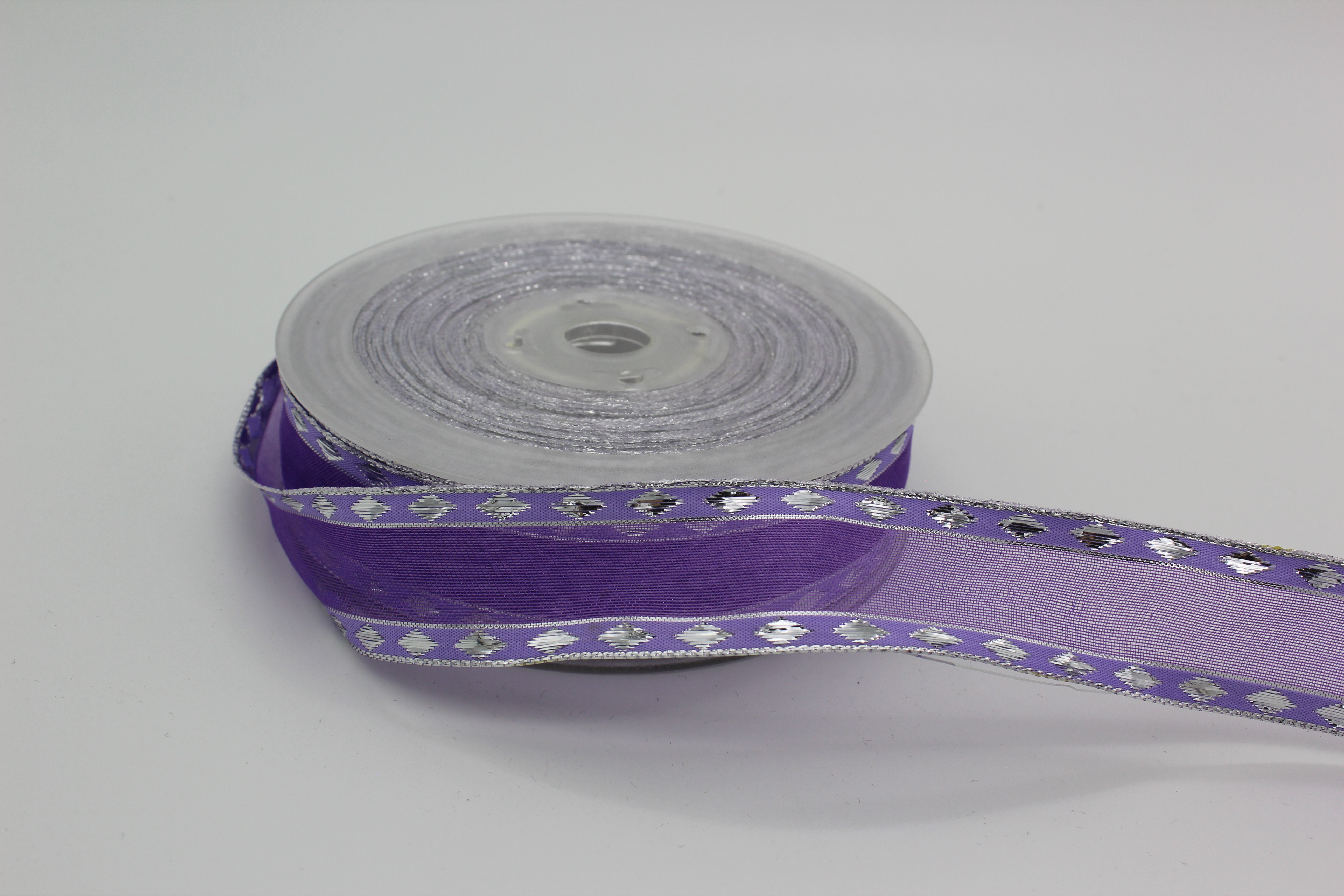 Лента органза 2,5 см 50 ярдов сиреневая с белой нитью