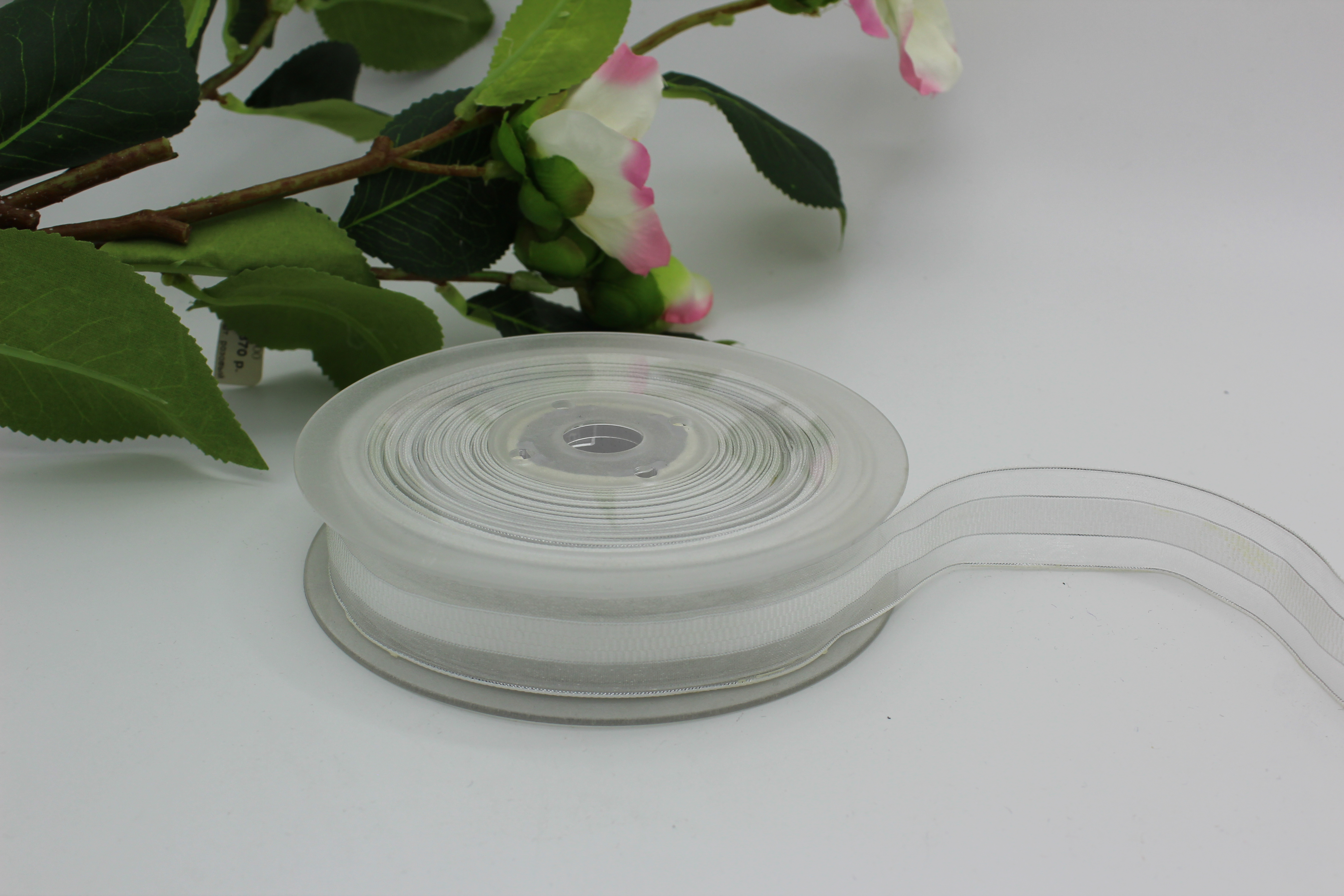 Лента органза 2,5 см 80 ярдов с серебрянным люриксом белая