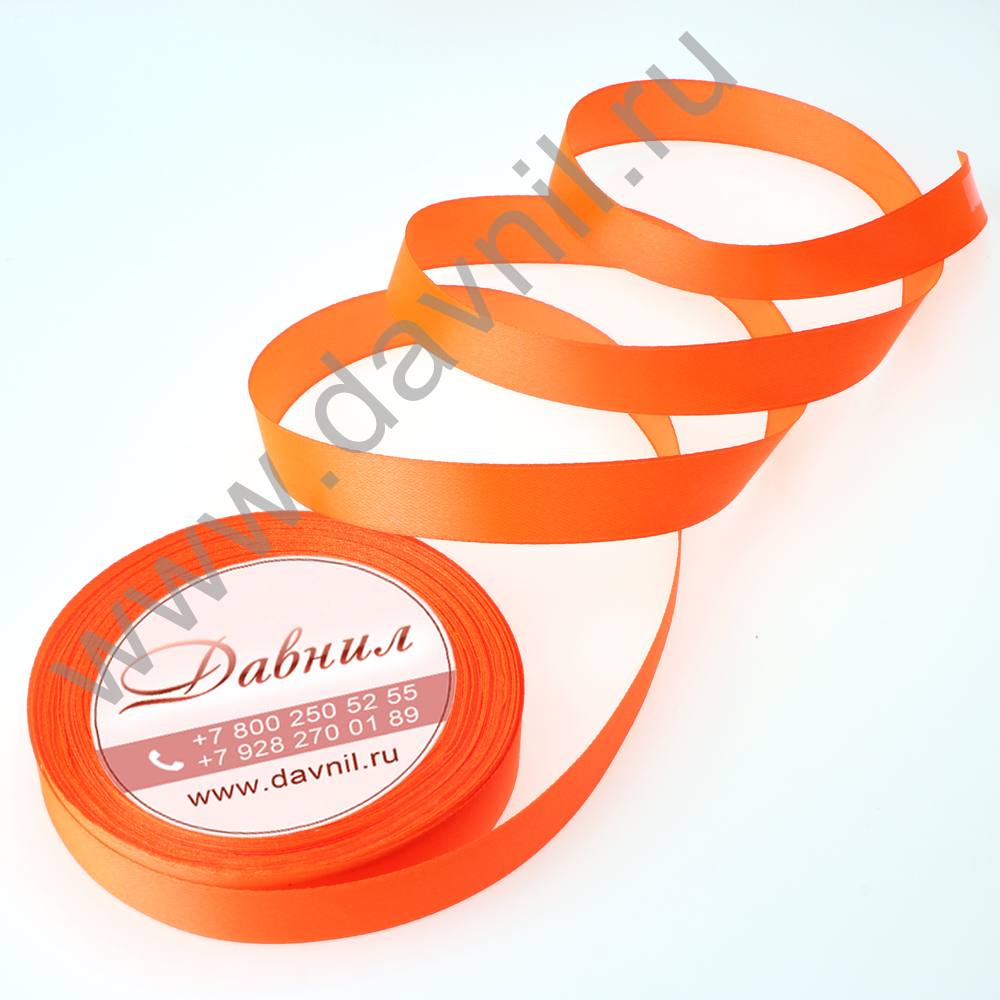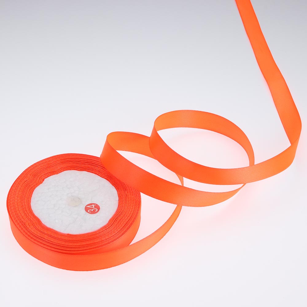 Лента атласная 1,2 см 25 ярдов оранжевая 022