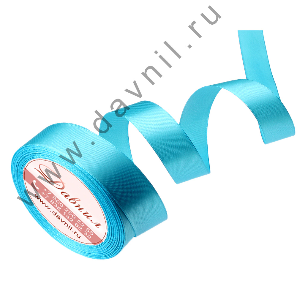 Лента атласная 1 см*25 ярдов голубая 020