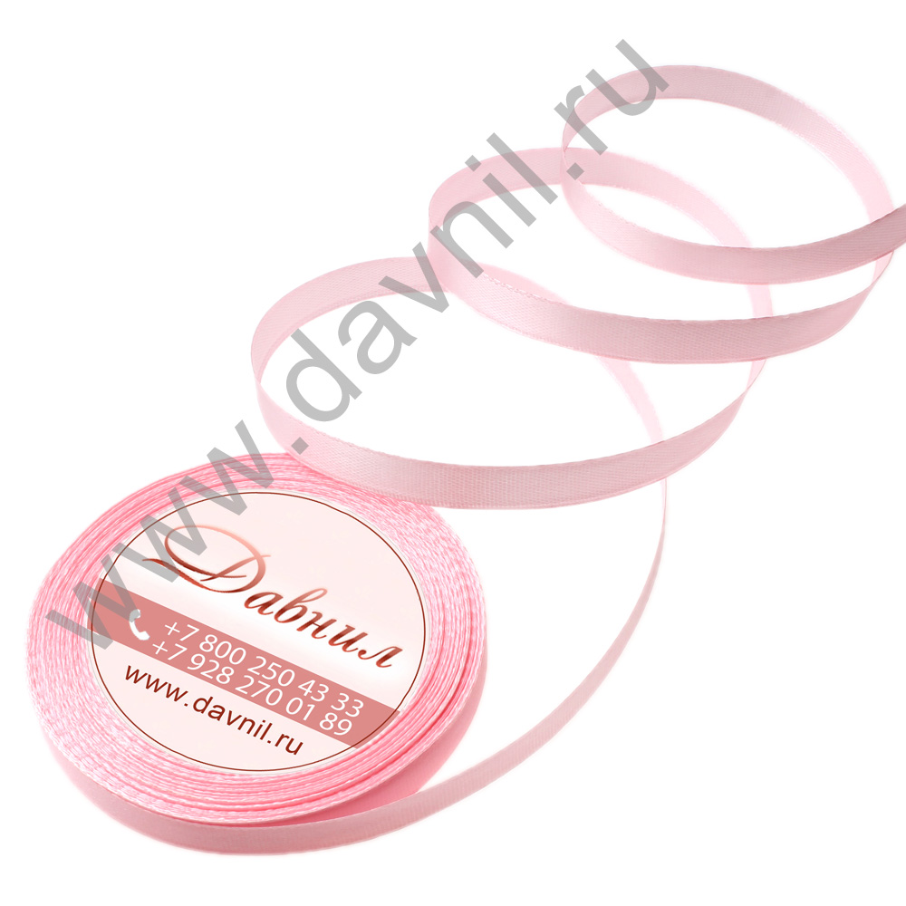 Лента атласная 0,6 см 32,9 м розовая 005