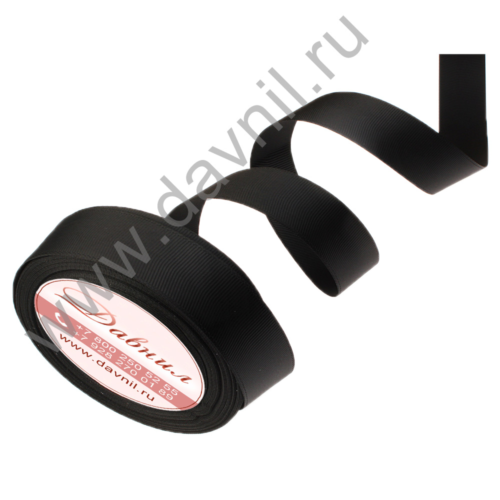 Лента репсовая 2 см 25 ярдов чёрная 039
