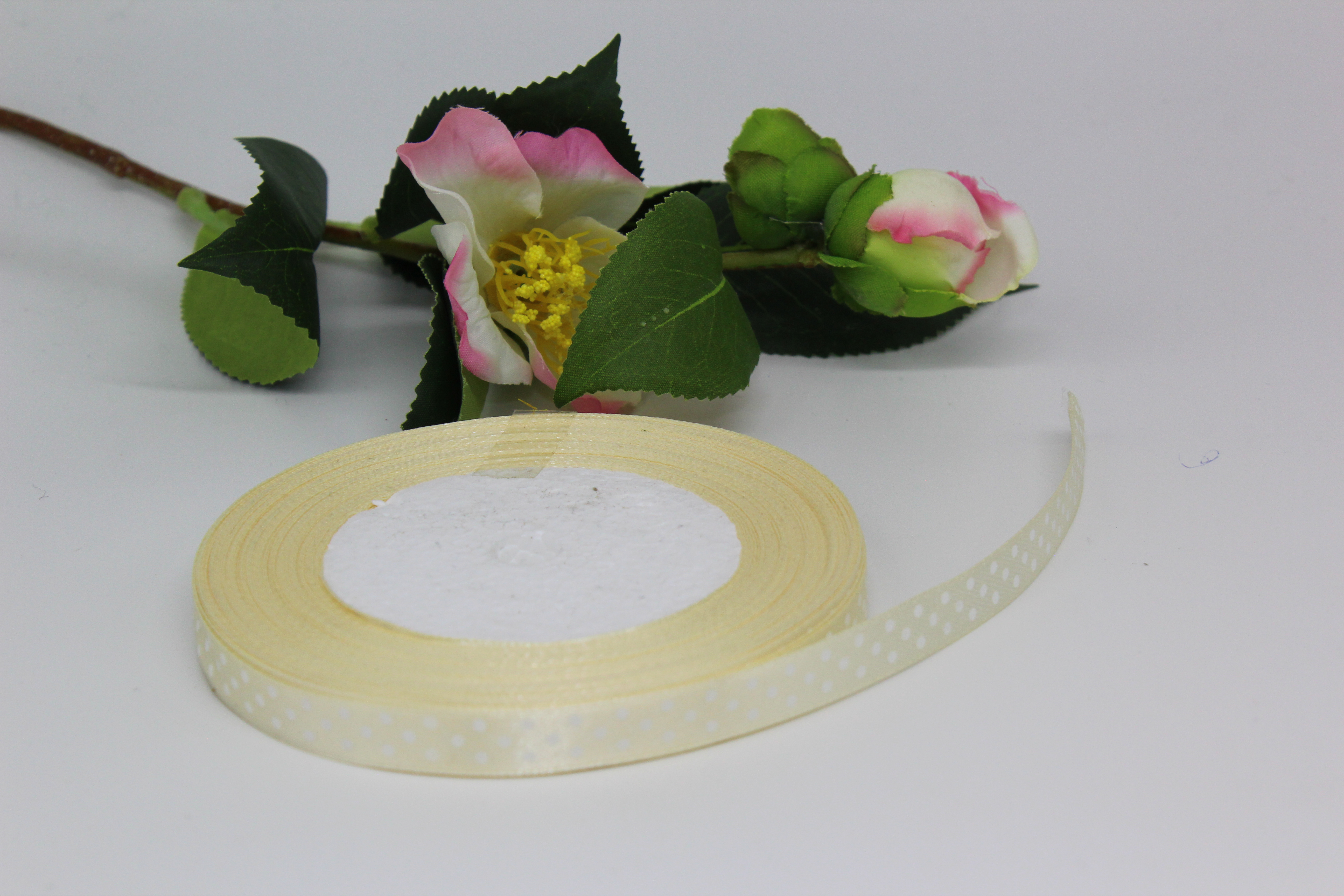 Лента атласная мелкий горошек 1 см 25 ярдов айвори 002