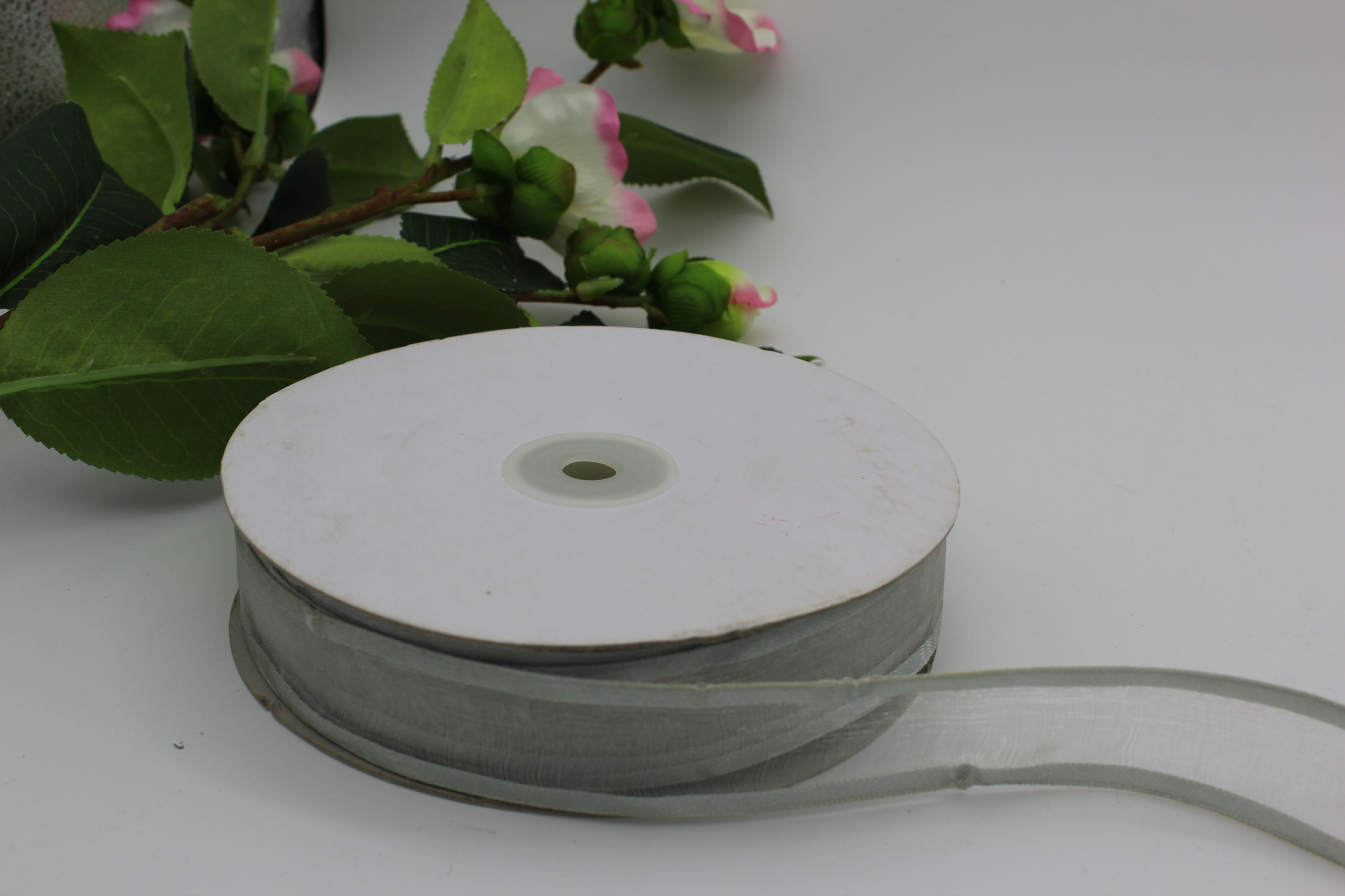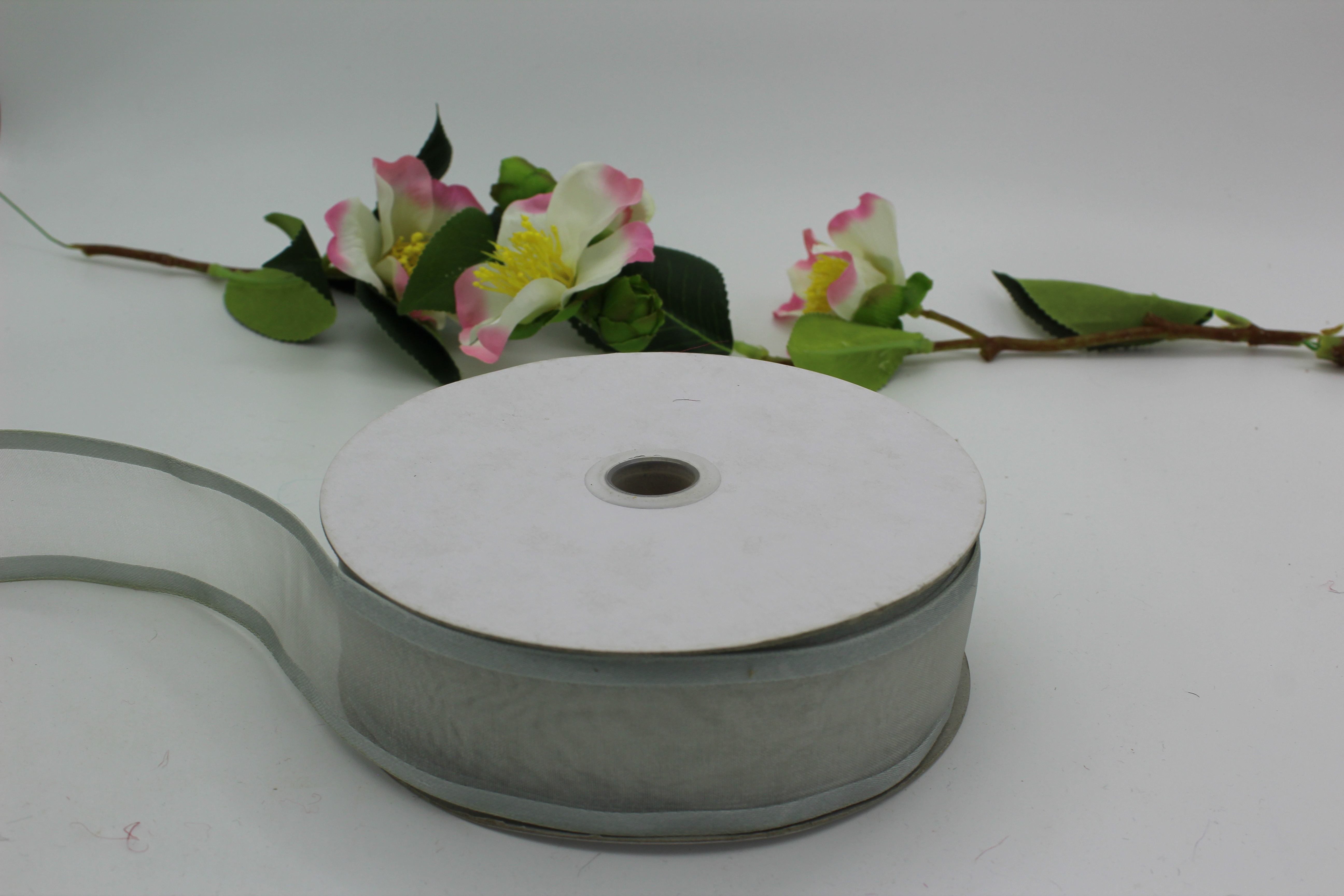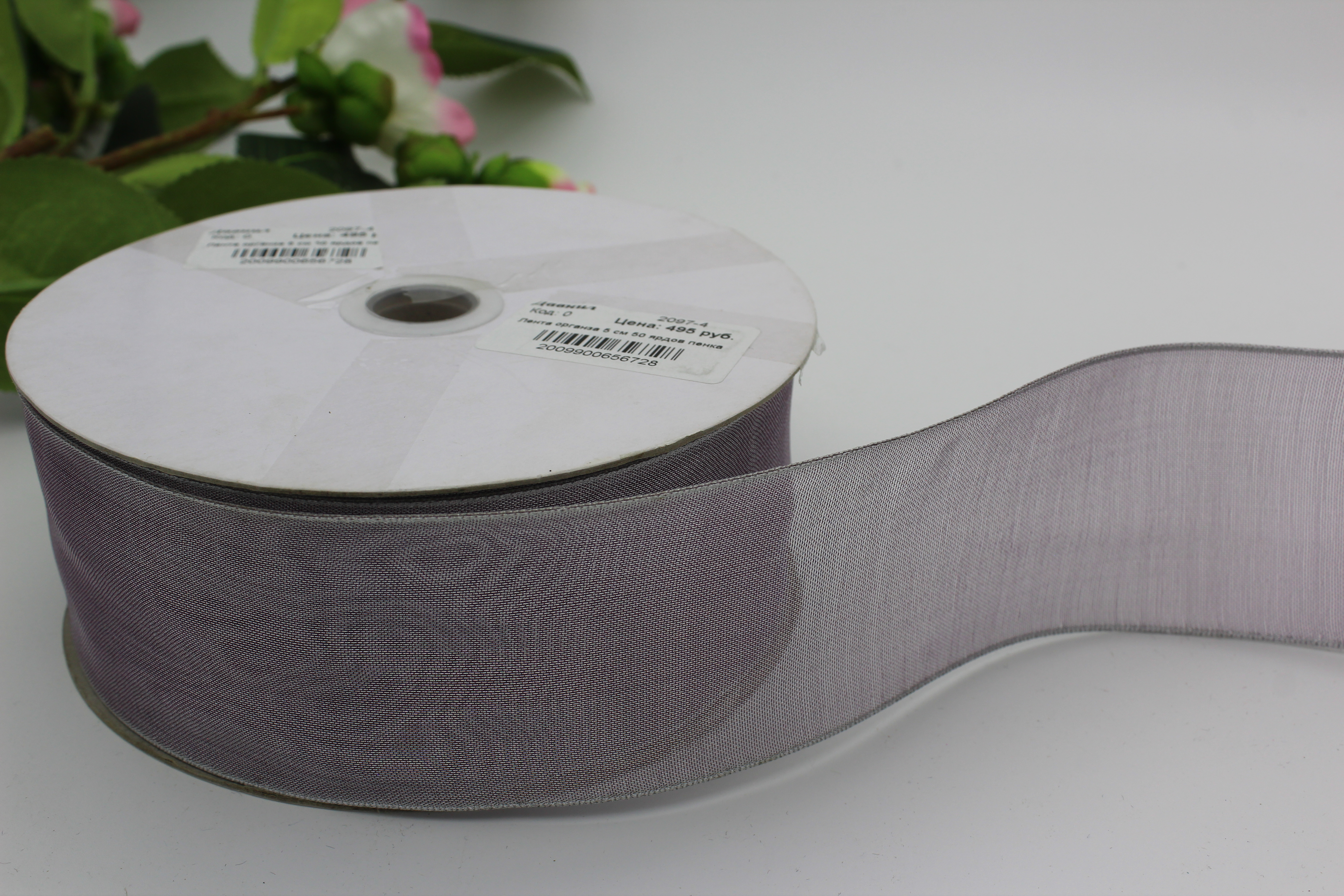 Лента органза с атласной лентой 4 см 80 ярдов серая
