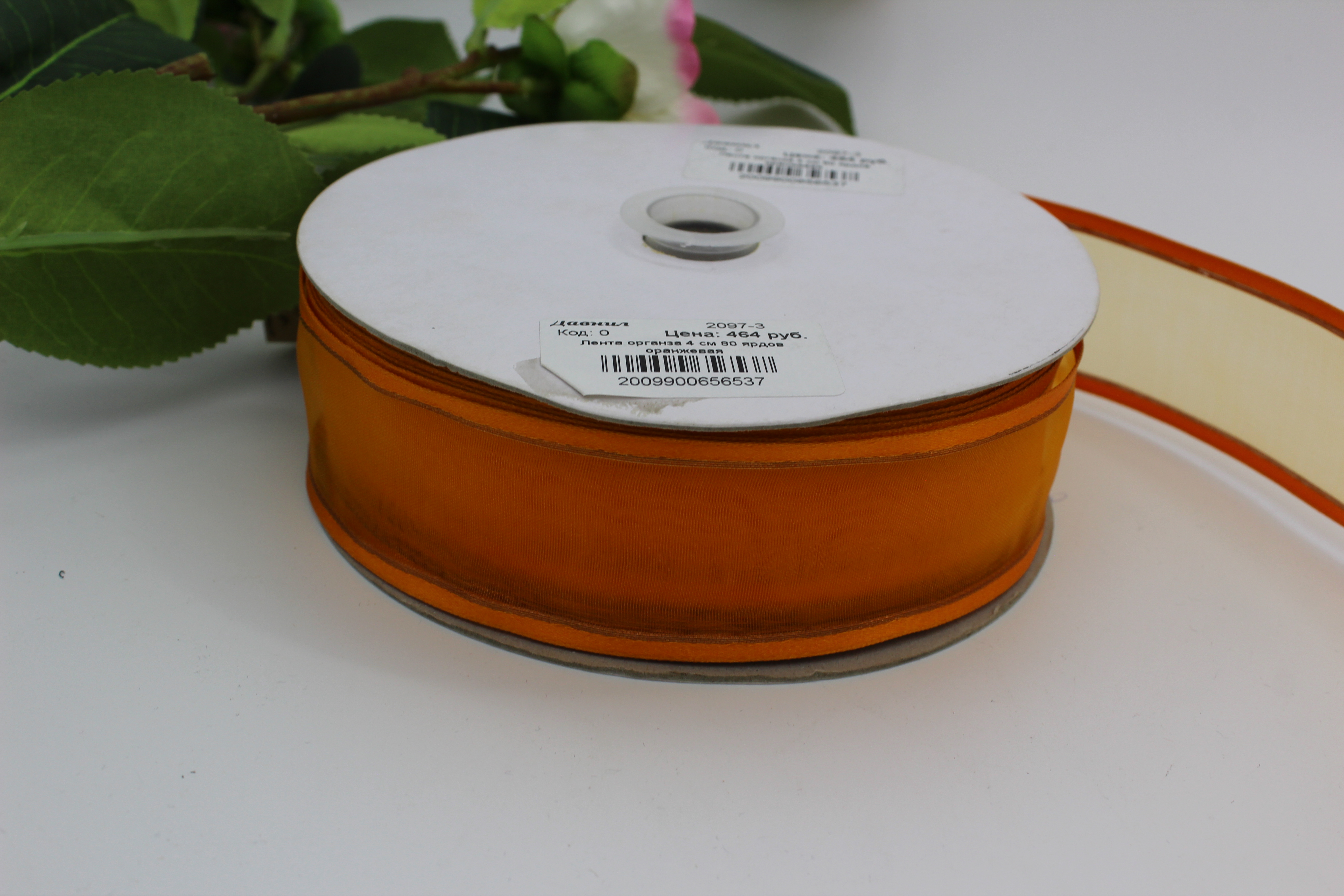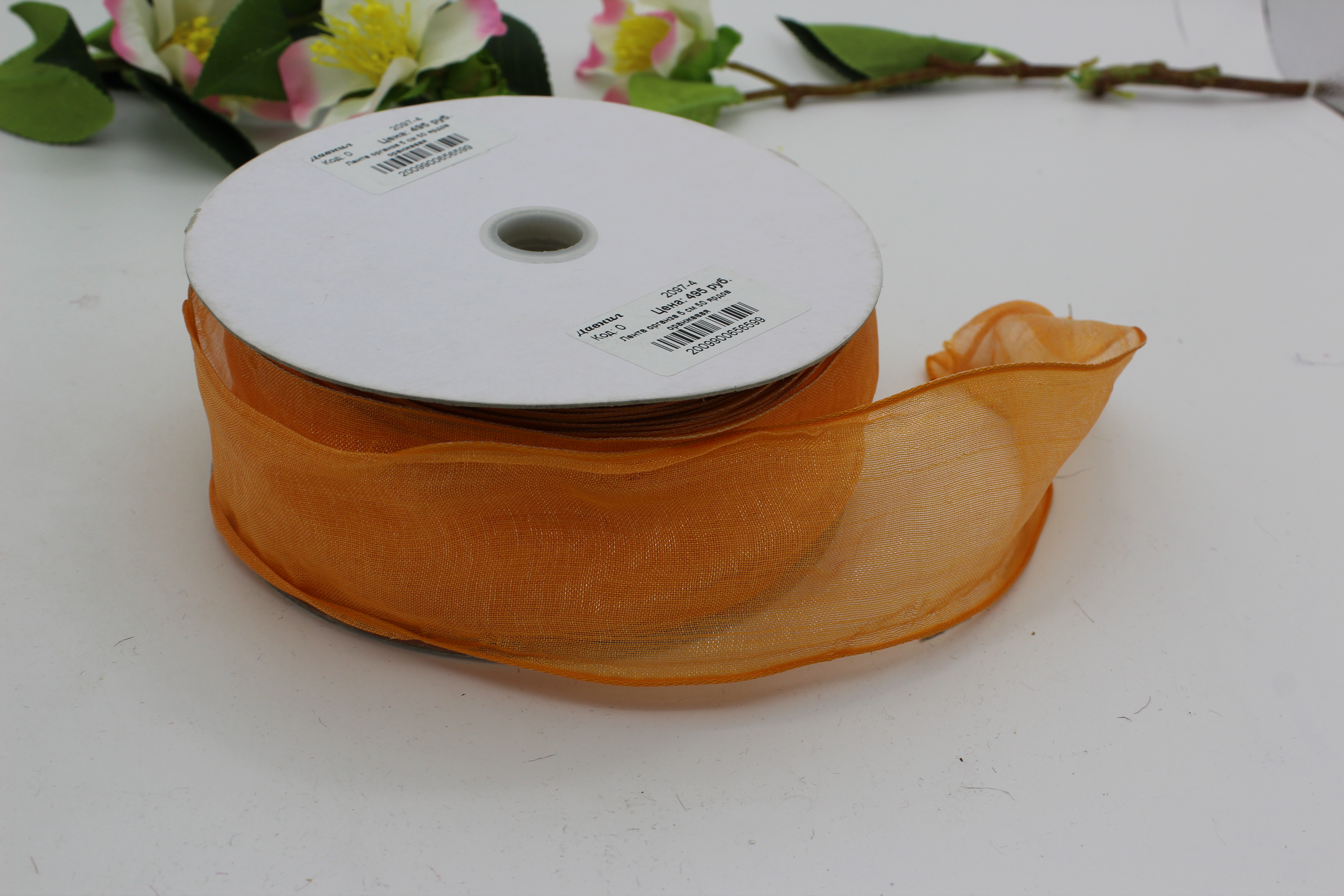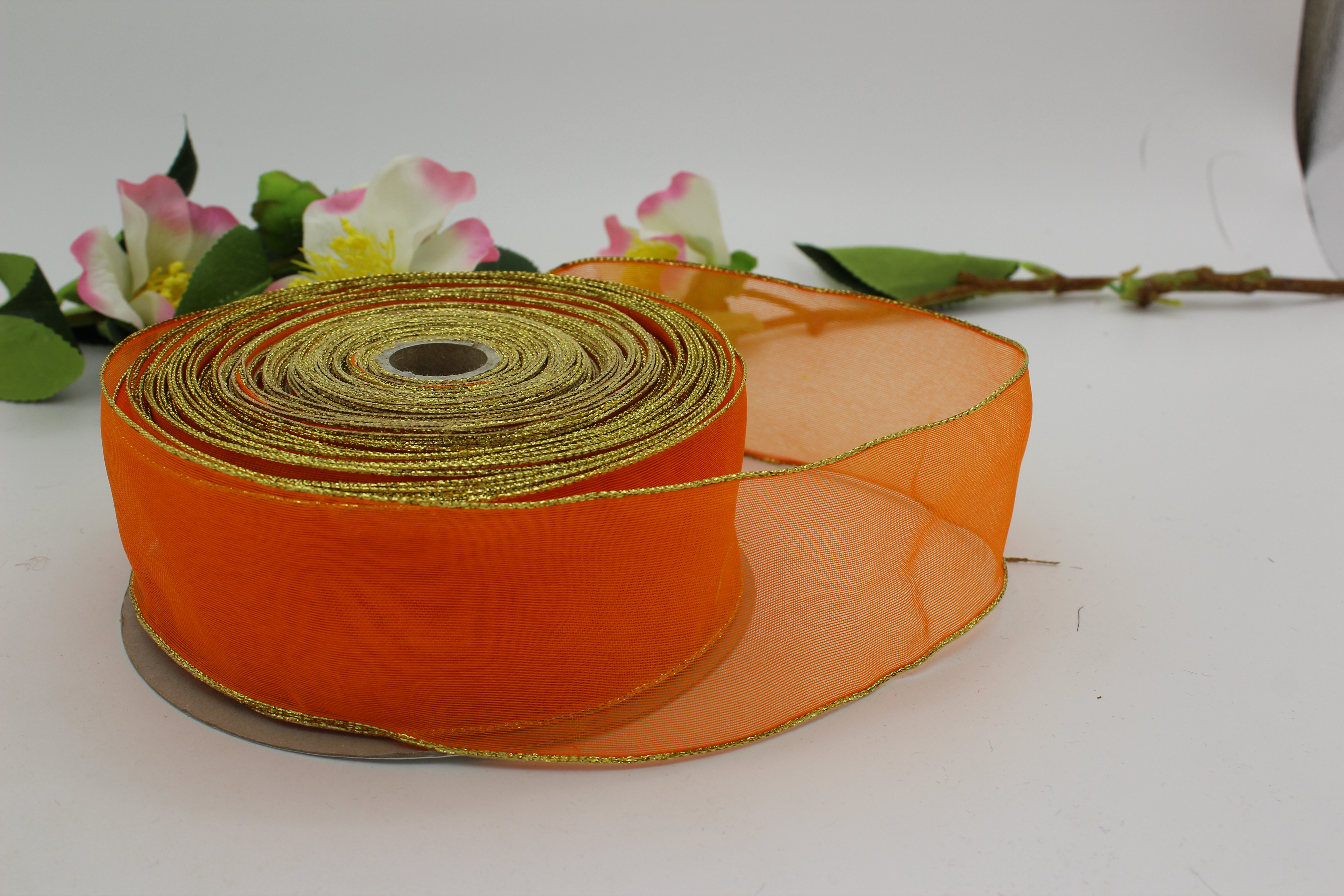 Лента органза 5 см 50 ярдов оранжевая с золотой окантовкой