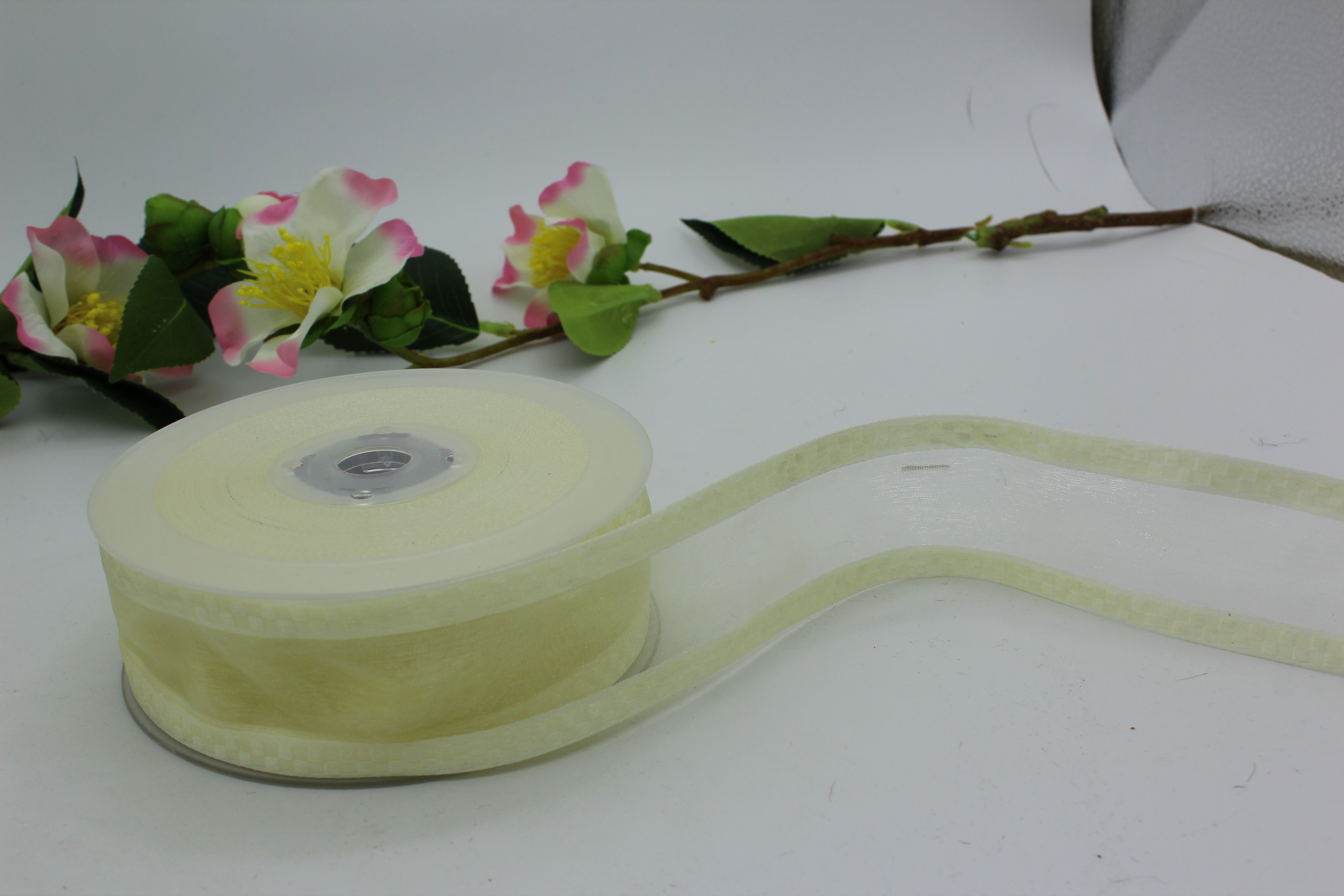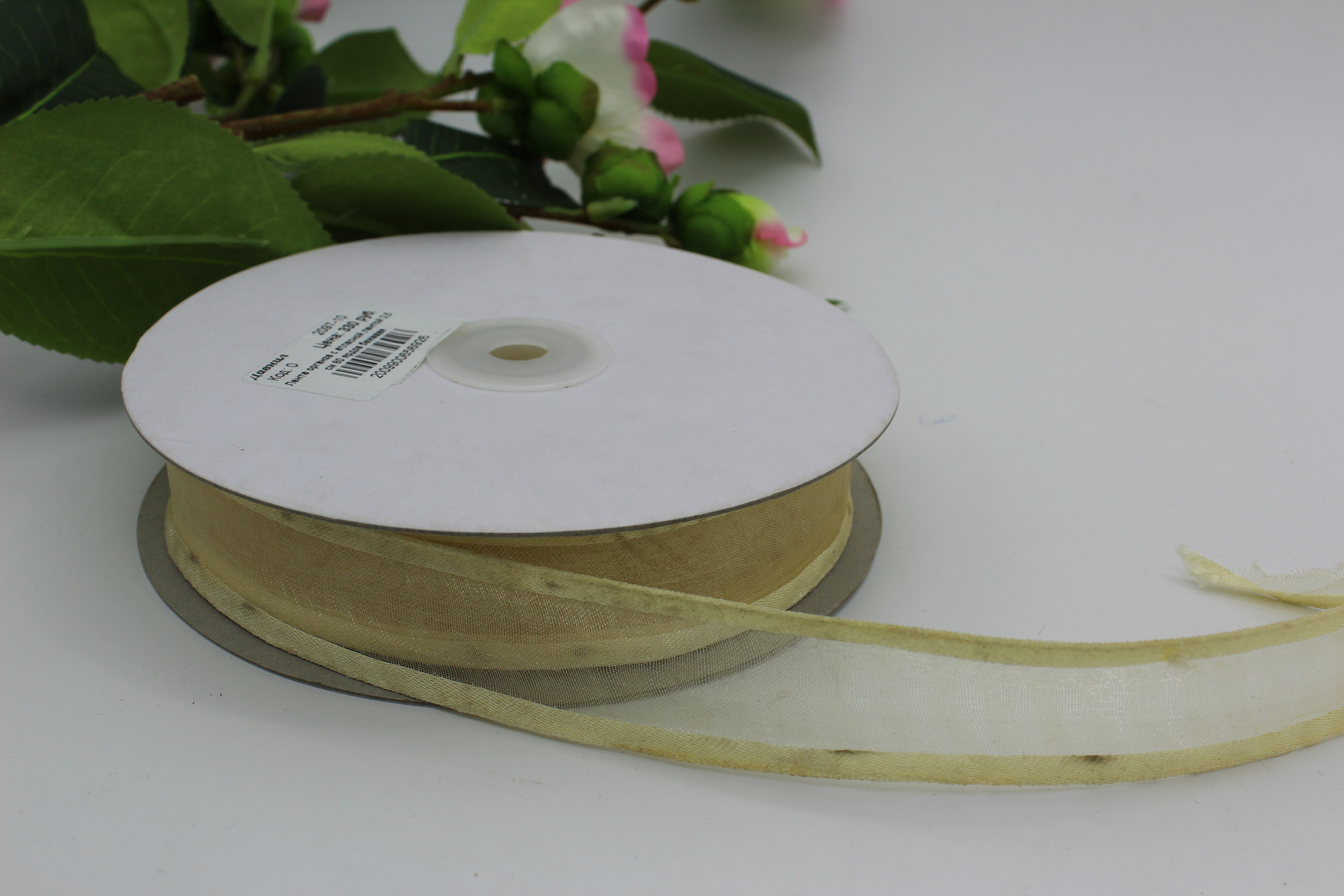 Лента органза с окантовкой в клеточку 4 см 50 ярдов бежевая