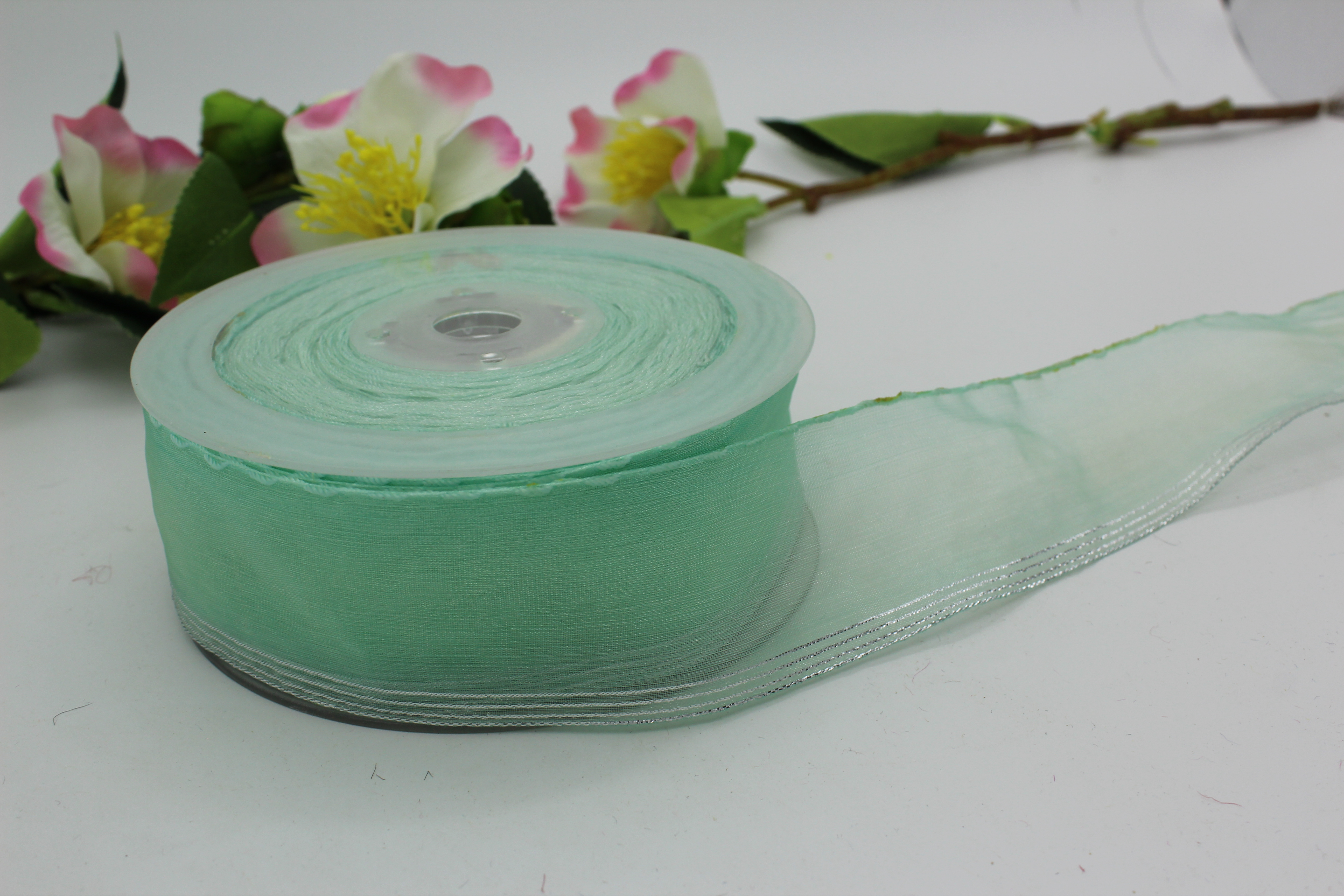 Лента органза с золотой окантовкой 4 см 50 ярдов мятная