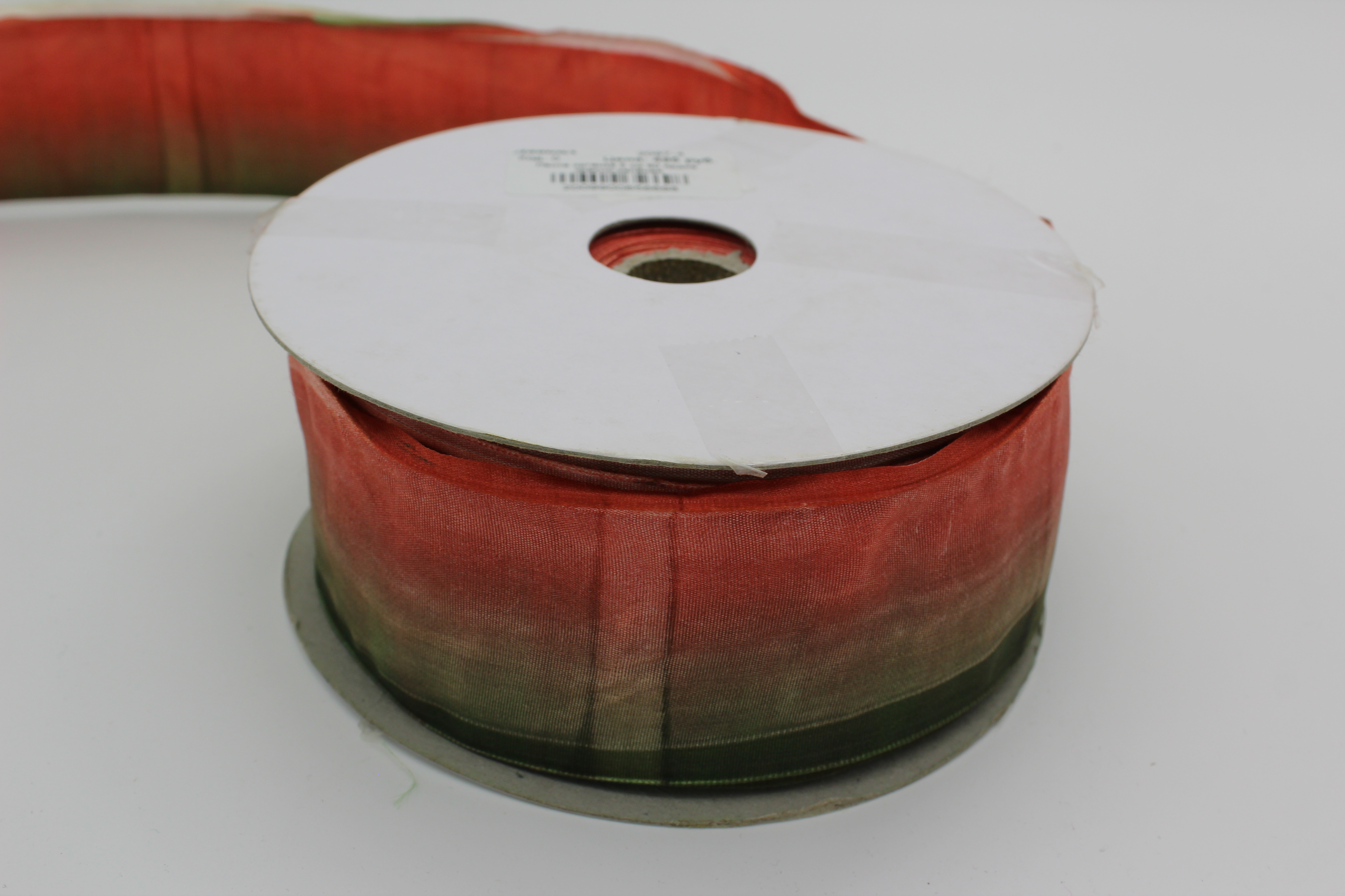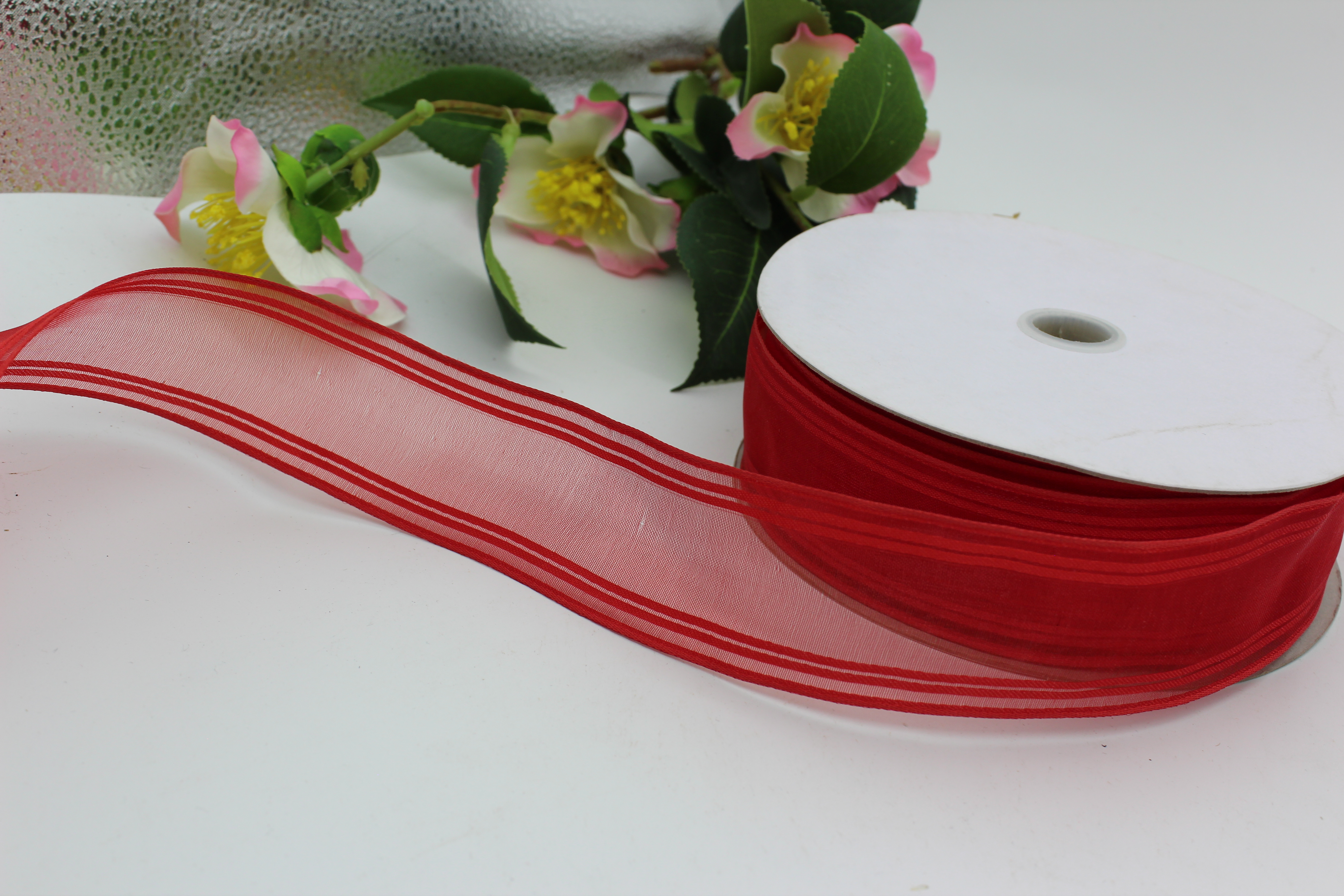 Лента органза с полоской атласной ленты 4 см 80 ярдов красная