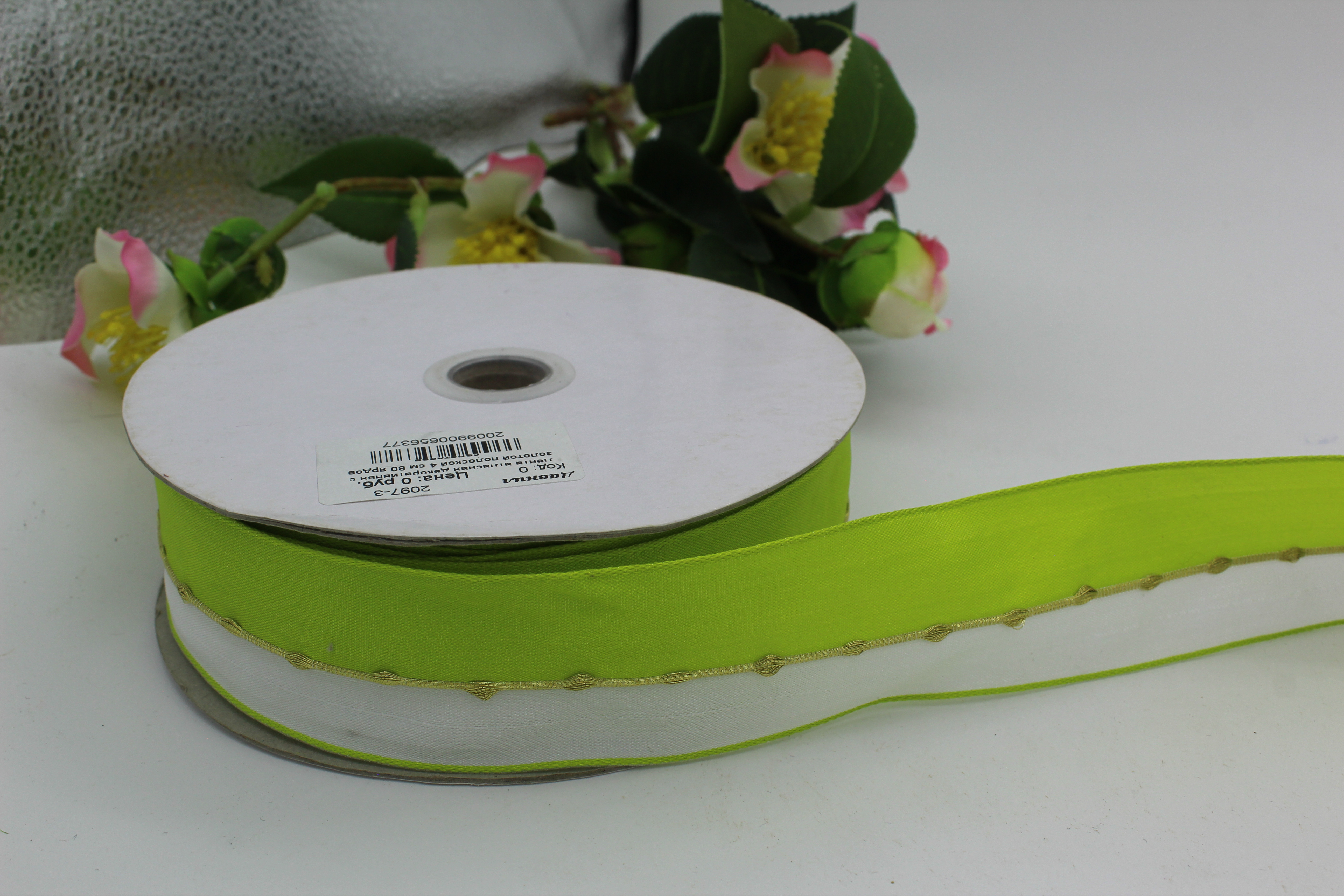 Лента декоративная с люрексом 2,5 см 80 ярдов салатовая