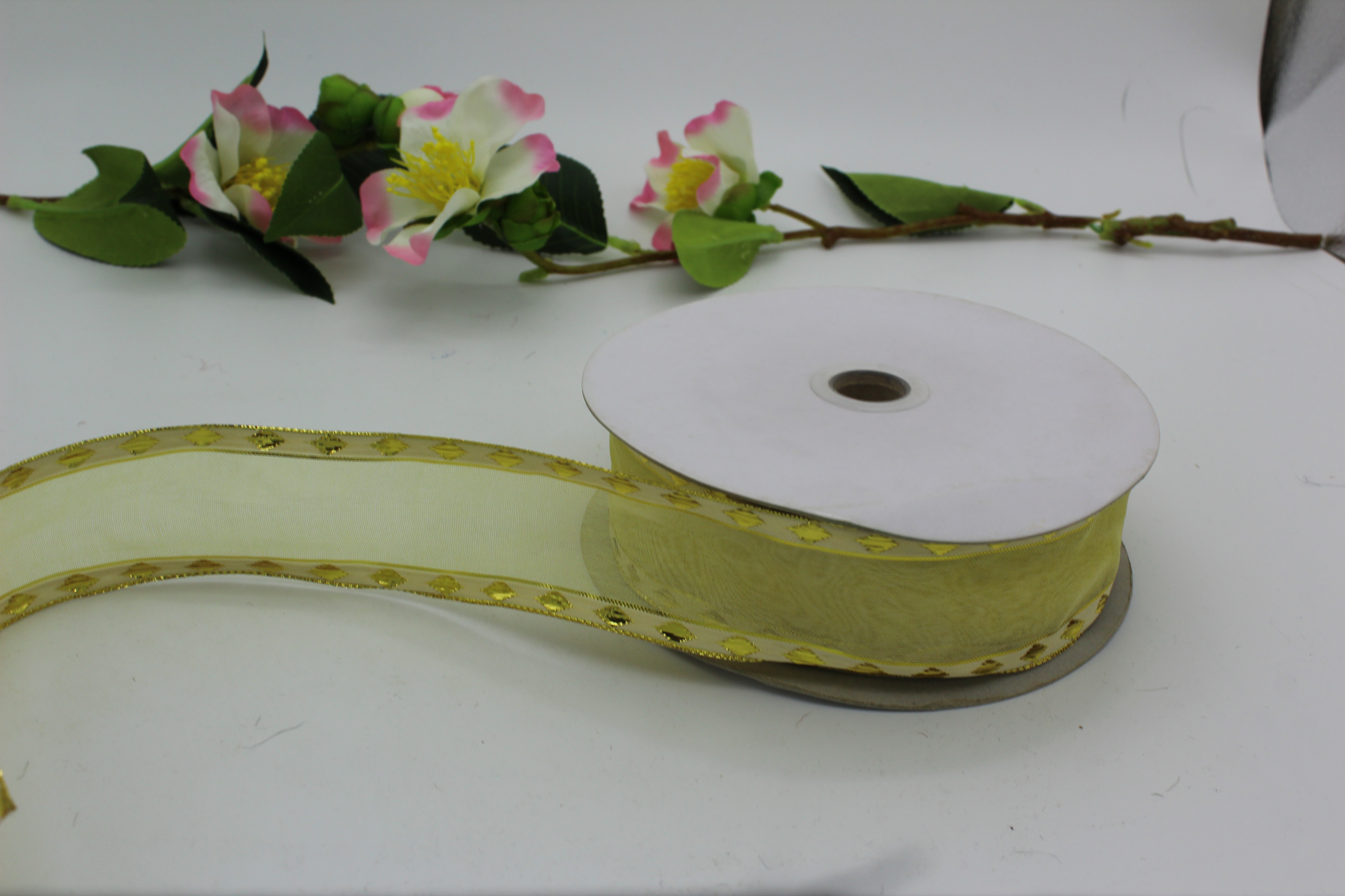 Лента декоративная с люрексом 2,5 см 80 ярдов жёлтая