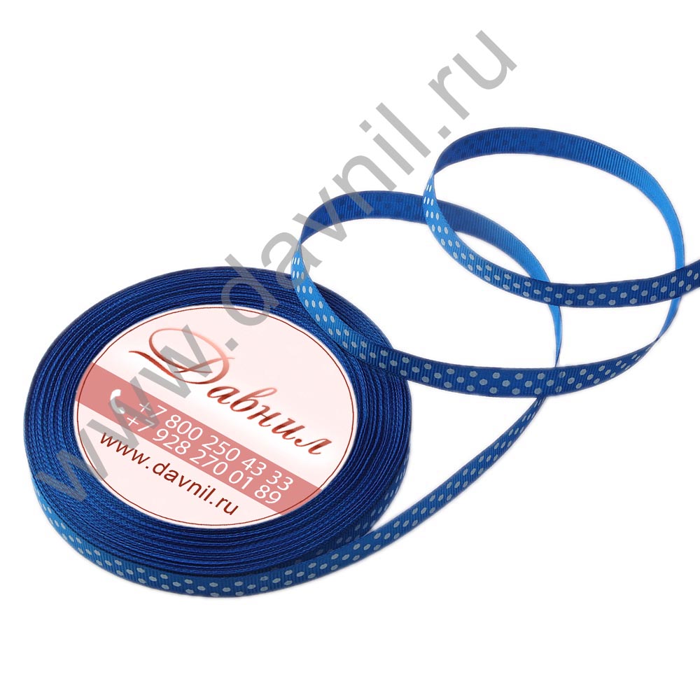 Лента репсовая мелкий горошек 1 см 25 ярдов синяя 40