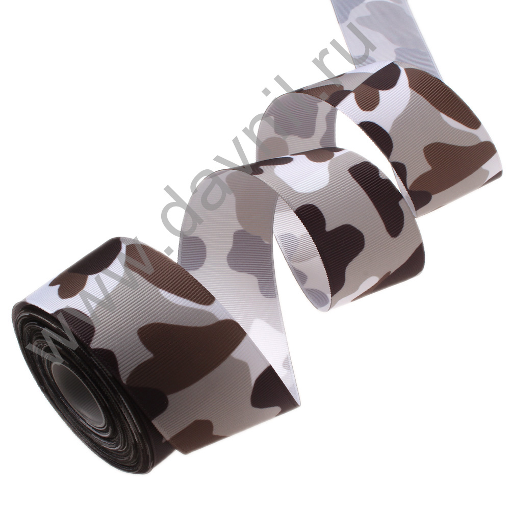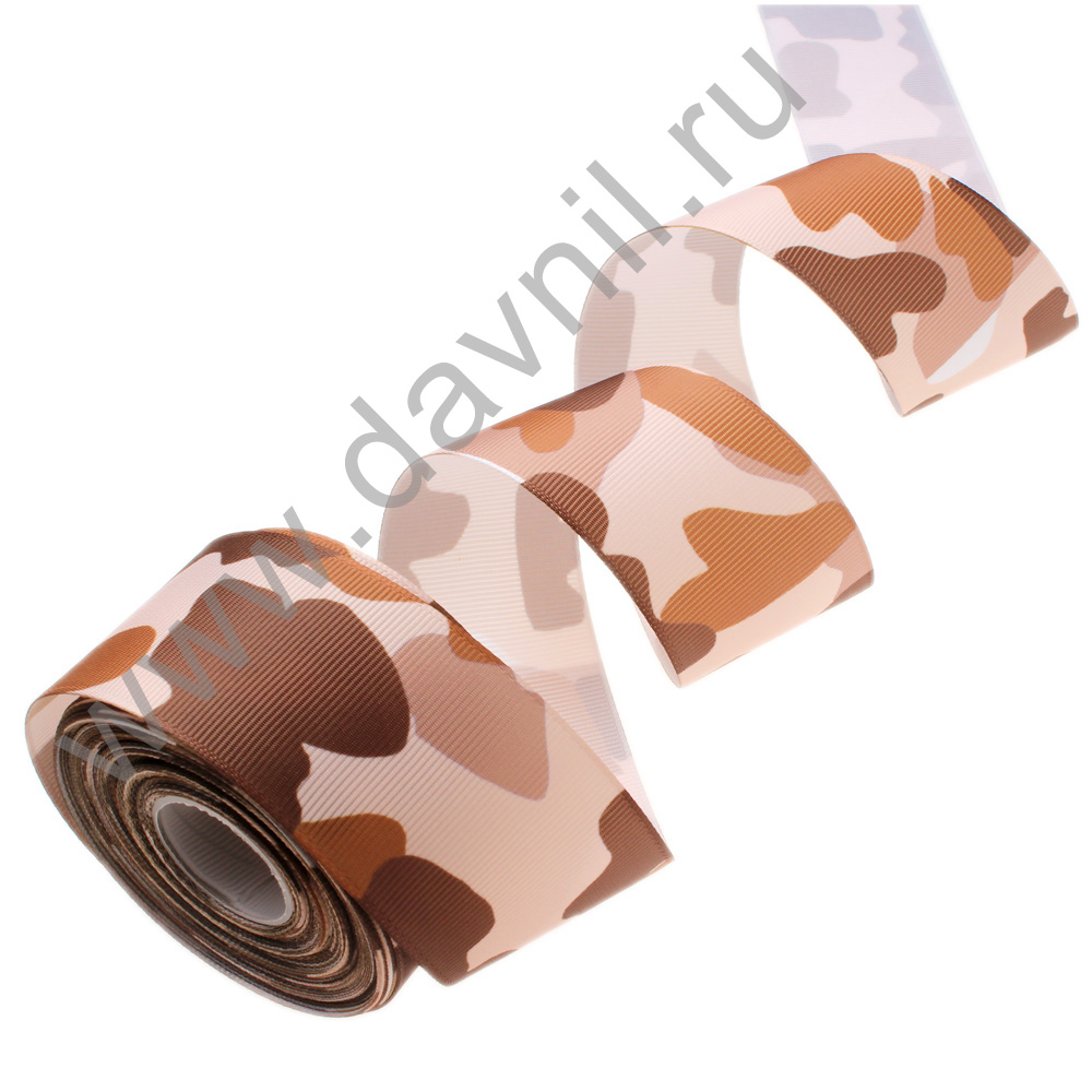 Лента репсовая декоративна"Камуфляж" 4 см*15 ярдов, коричневая