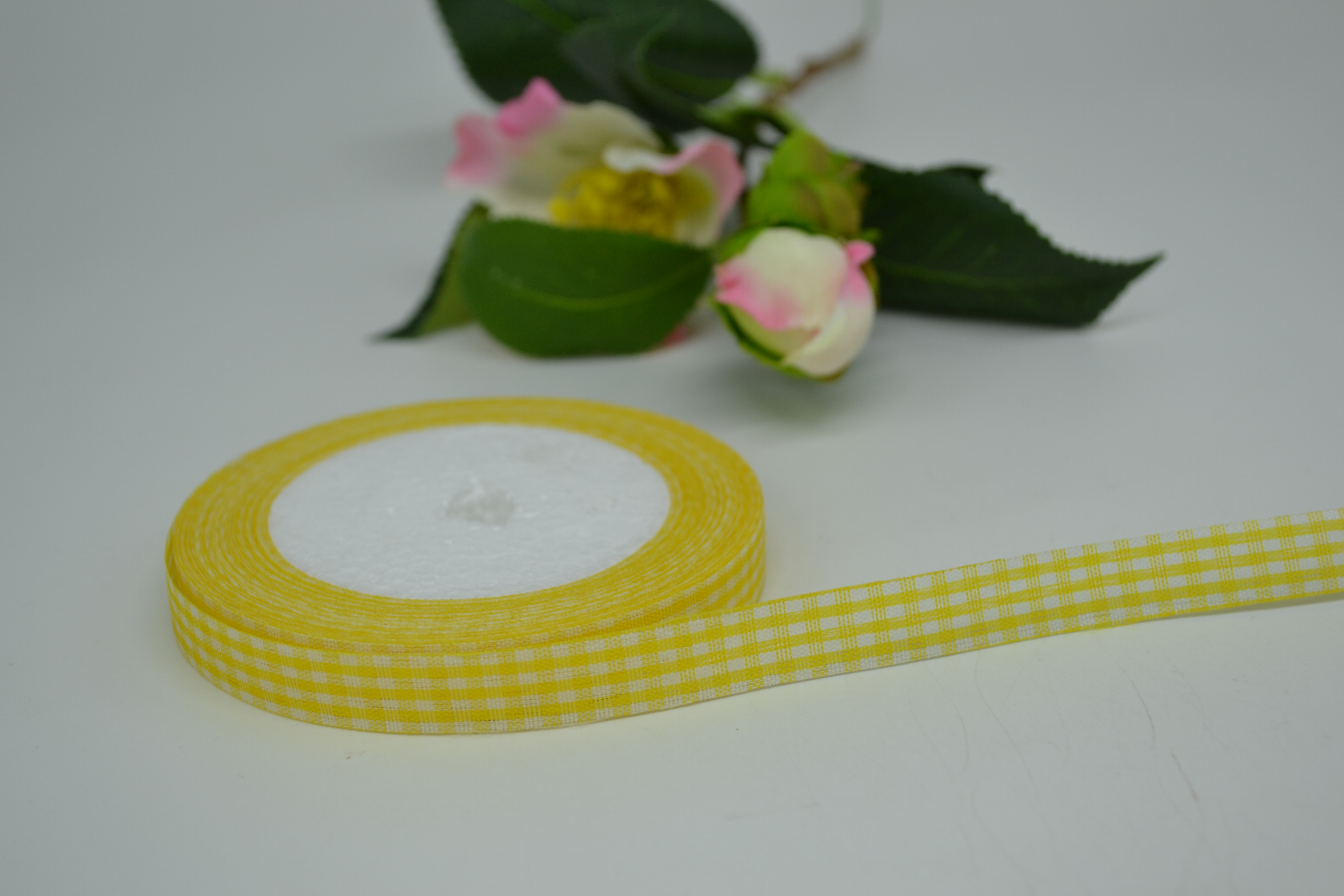 Лента маленькая клетка 1,2 см 25 ярдов жёлтая