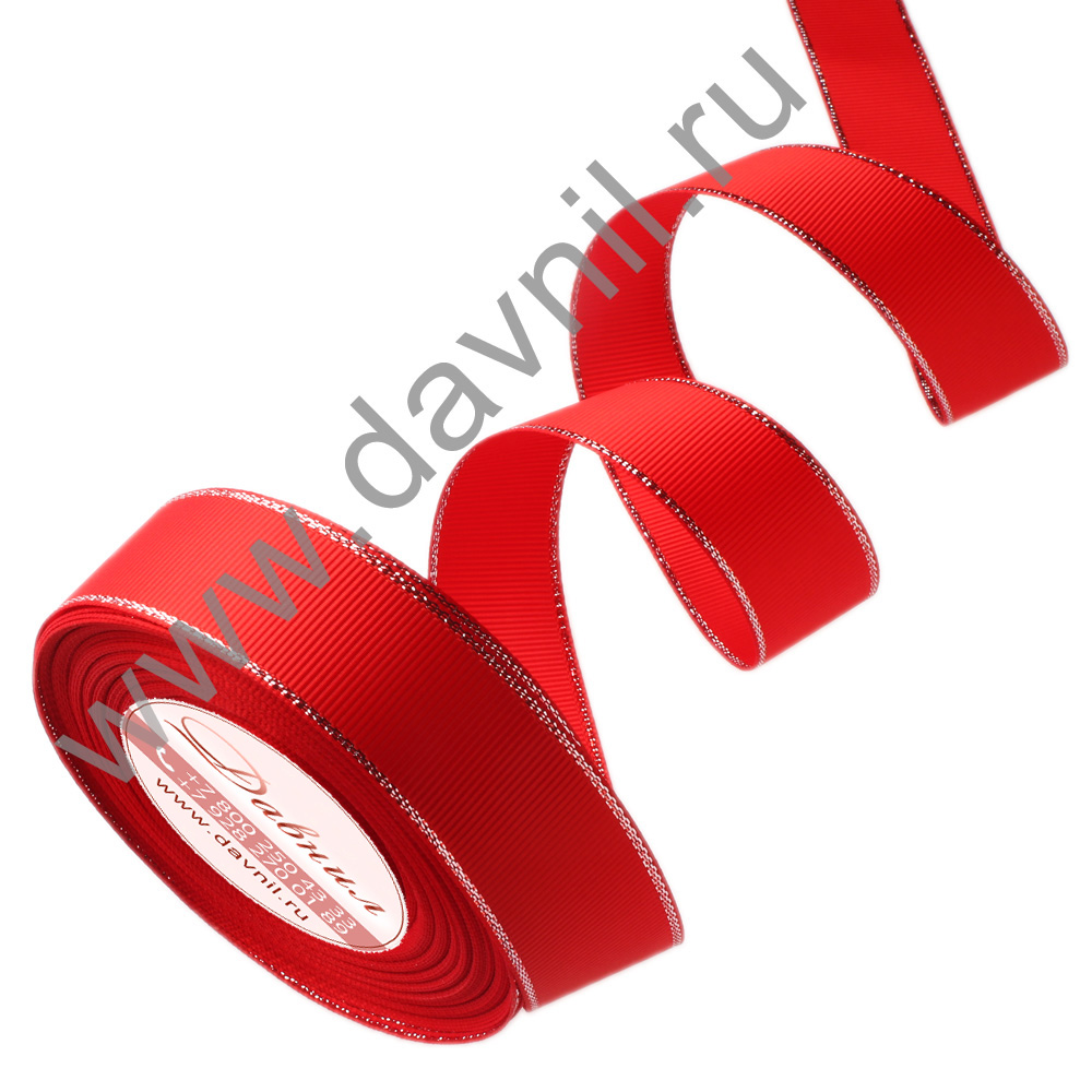 Лента репсовая с серебряным люрексом 2,5 см*20 ярдов красная 26