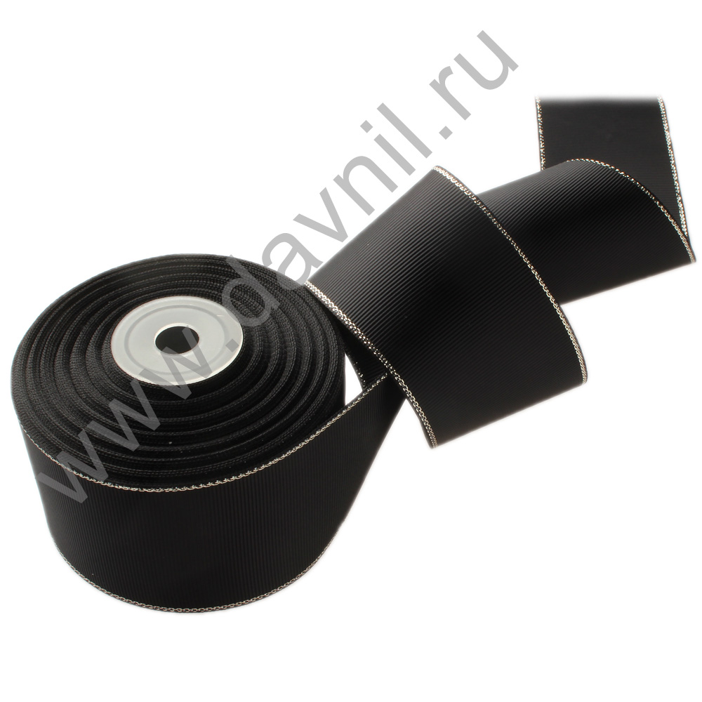 Лента репсовая с серебряным люрексом 4 см*20 ярдов чёрная 39