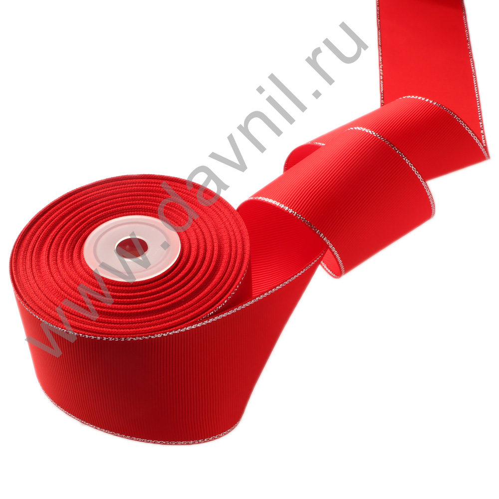 Лента репсовая с серебряным люрексом 4 см*20 ярдов красная 26