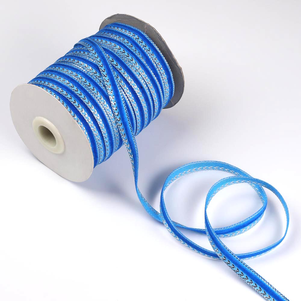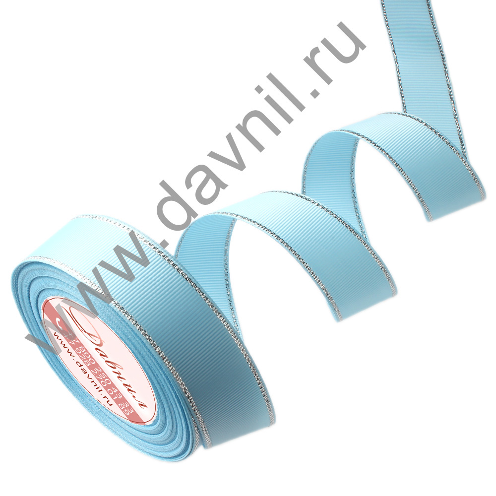 Лента репсовая с серебряным люрексом 2,5 см*20 ярдов голубая 187