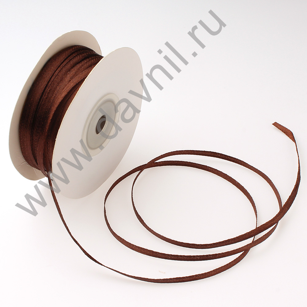 Лента атласная 0,3 см*90 ярдов темно-коричневая 032