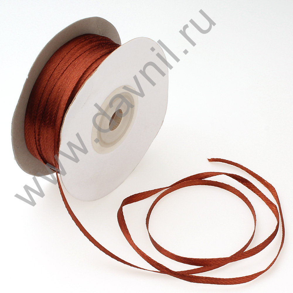 Лента атласная 0,3 см*90 ярдов коричневая 071
