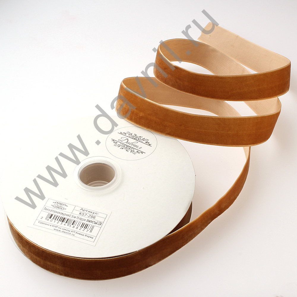 Лента бархатная 2,5 см*15 ярдов коричневая 104