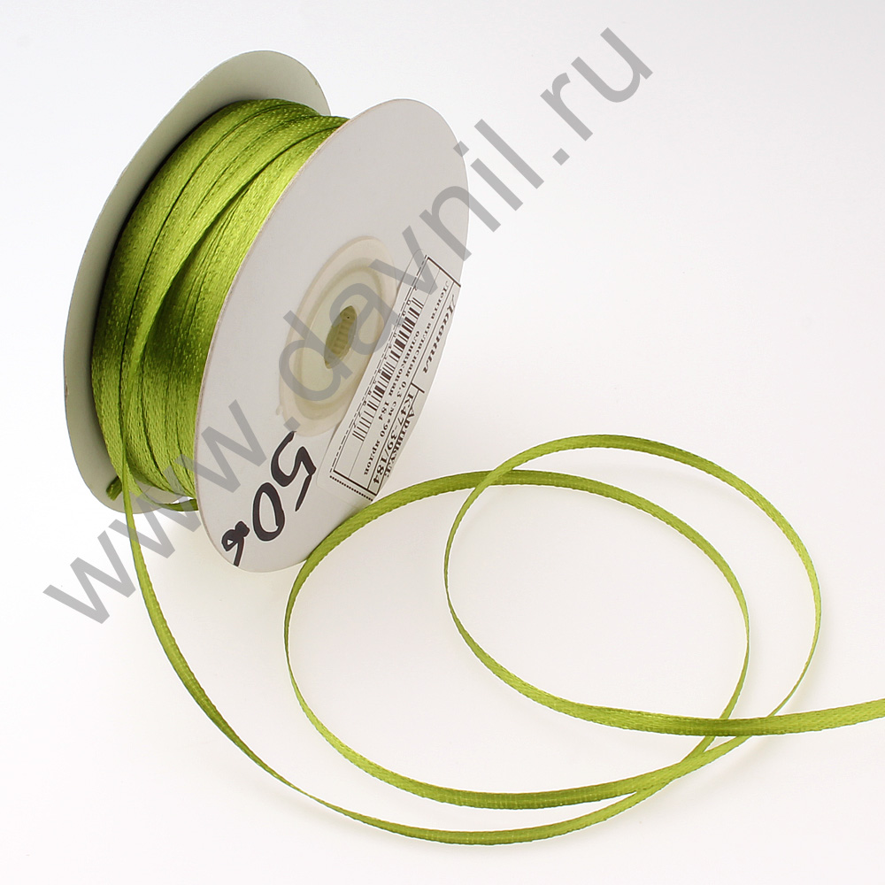 Лента атласная 0,3 см*90 ярдов оливковая 184