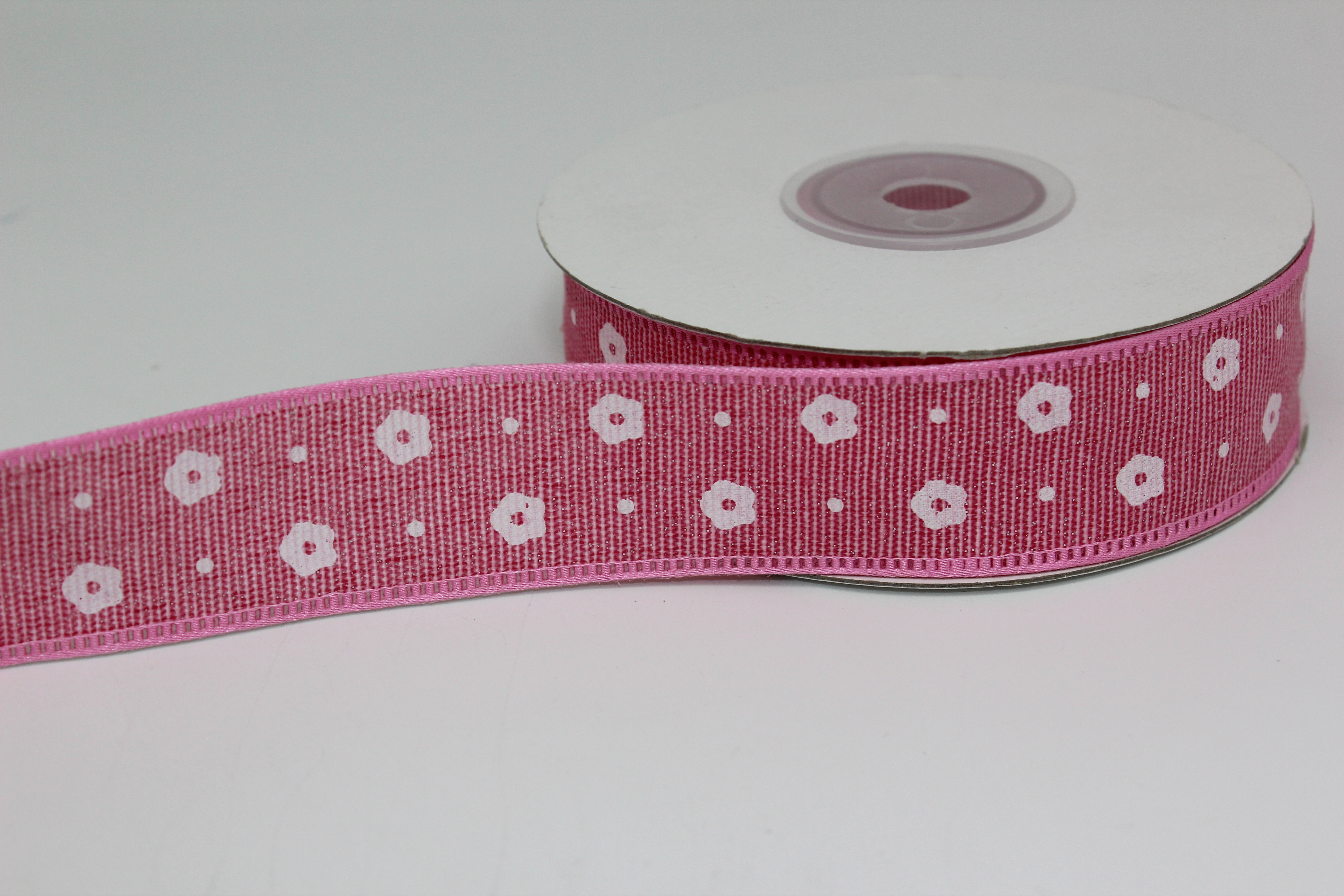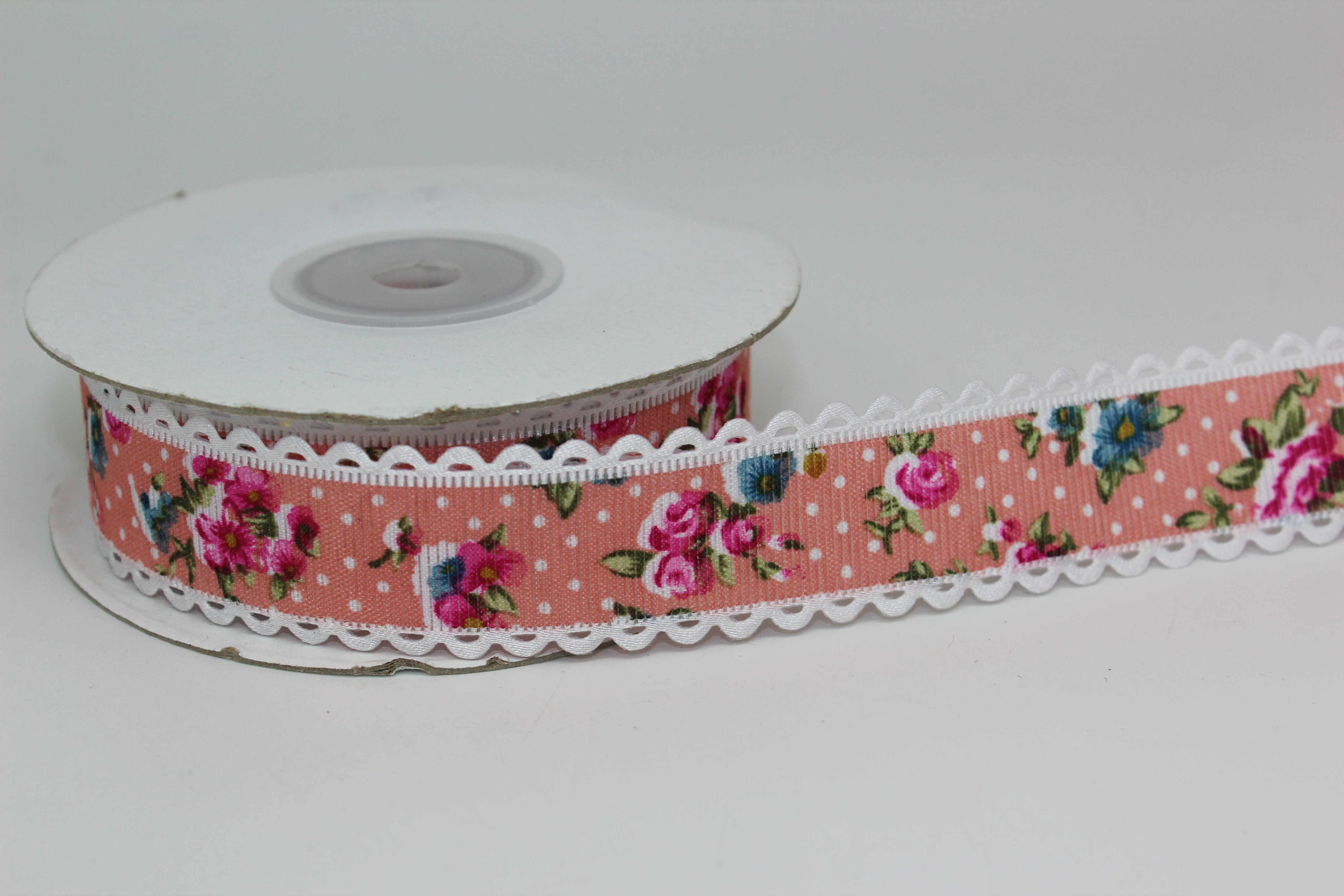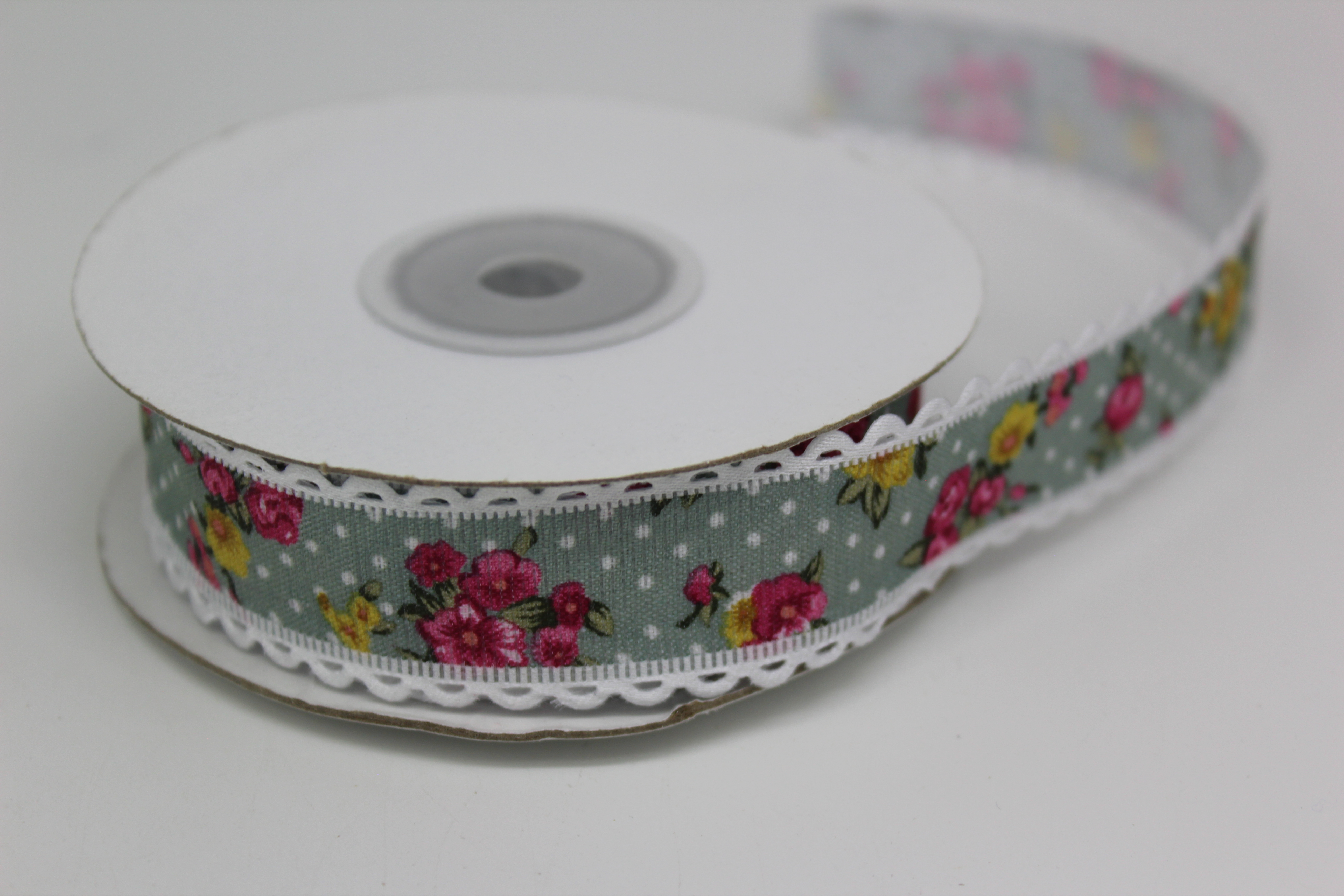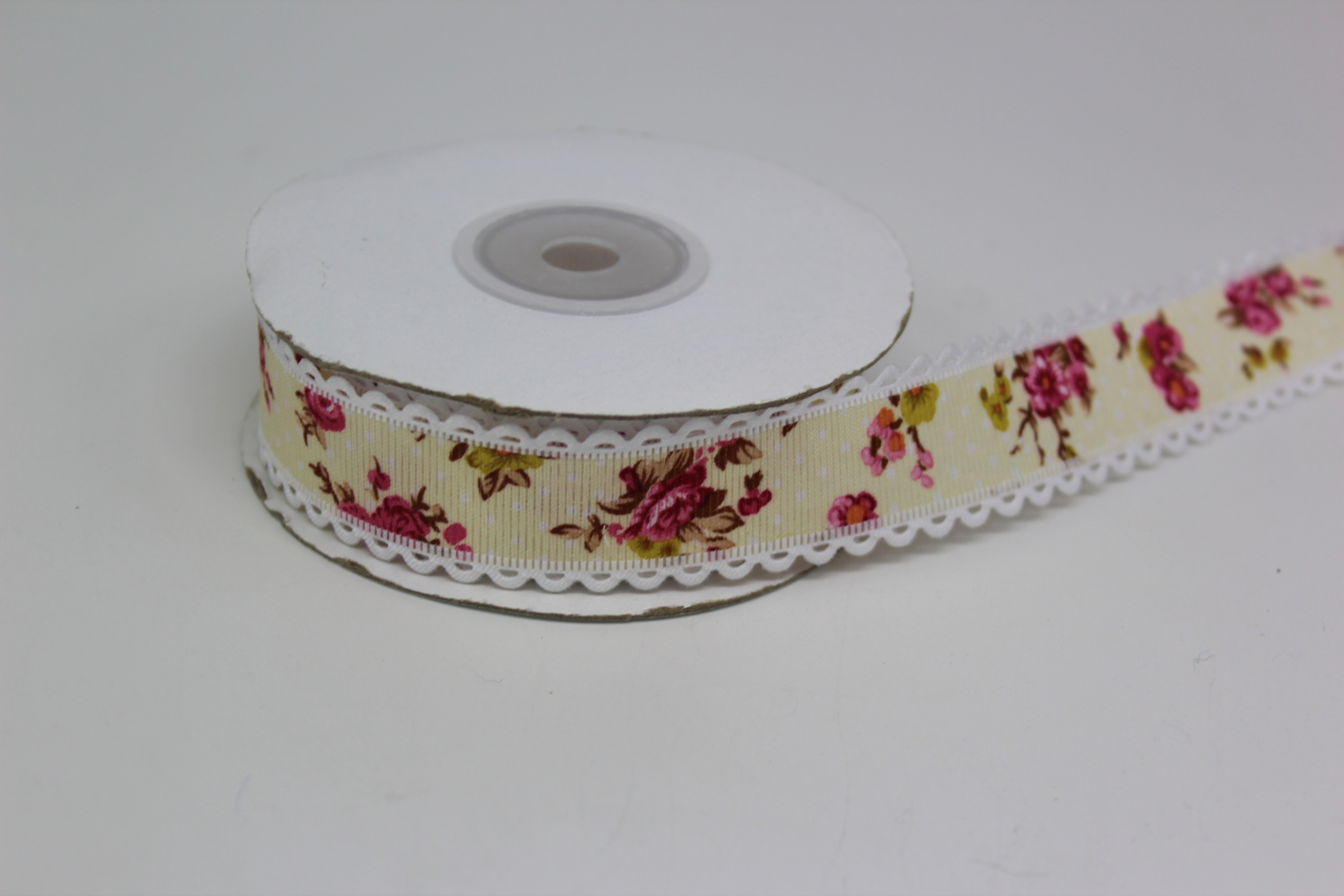 Лента тканевая с кружевной окантовкой 2,5 см 15 ярд "Цветочек" пенка