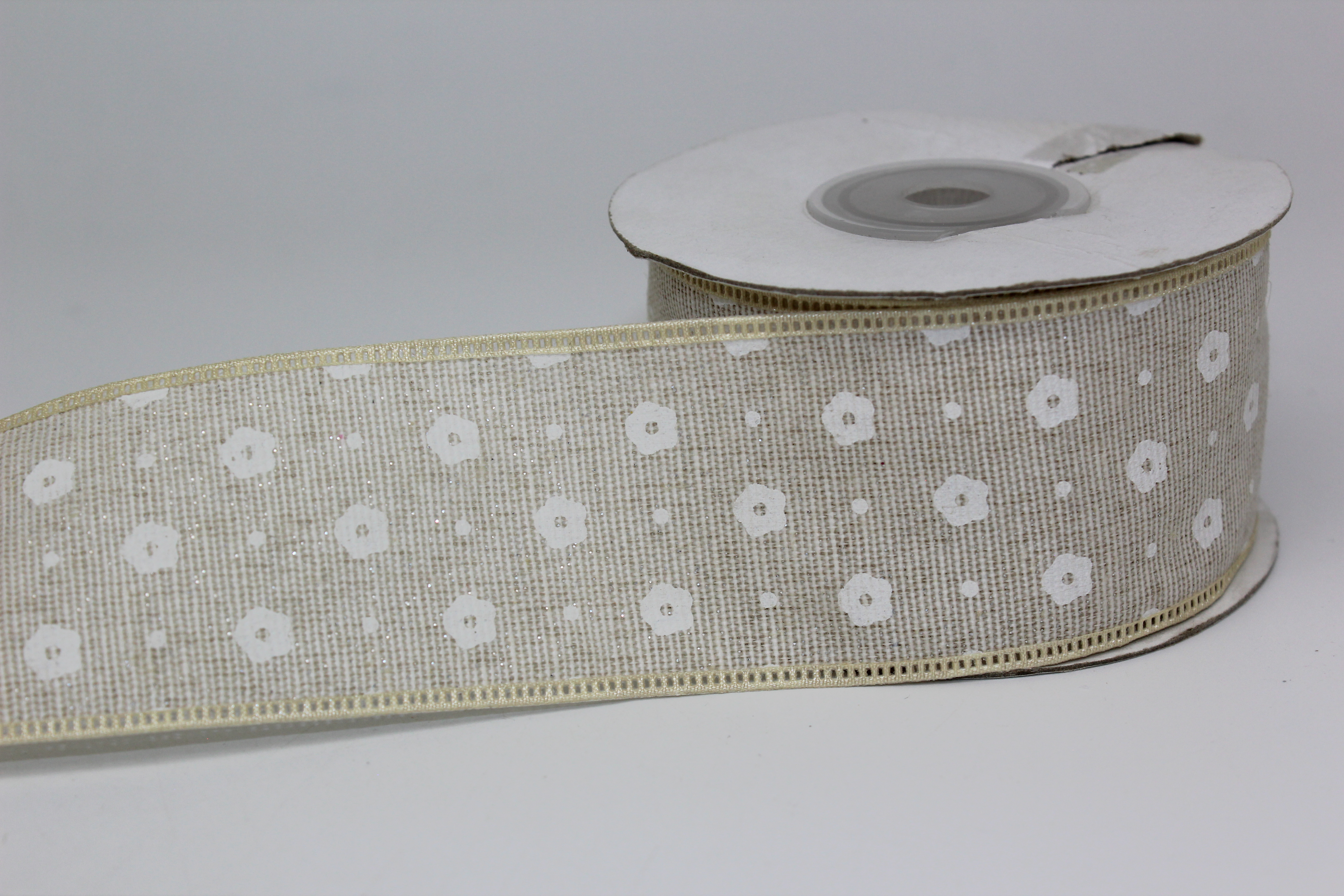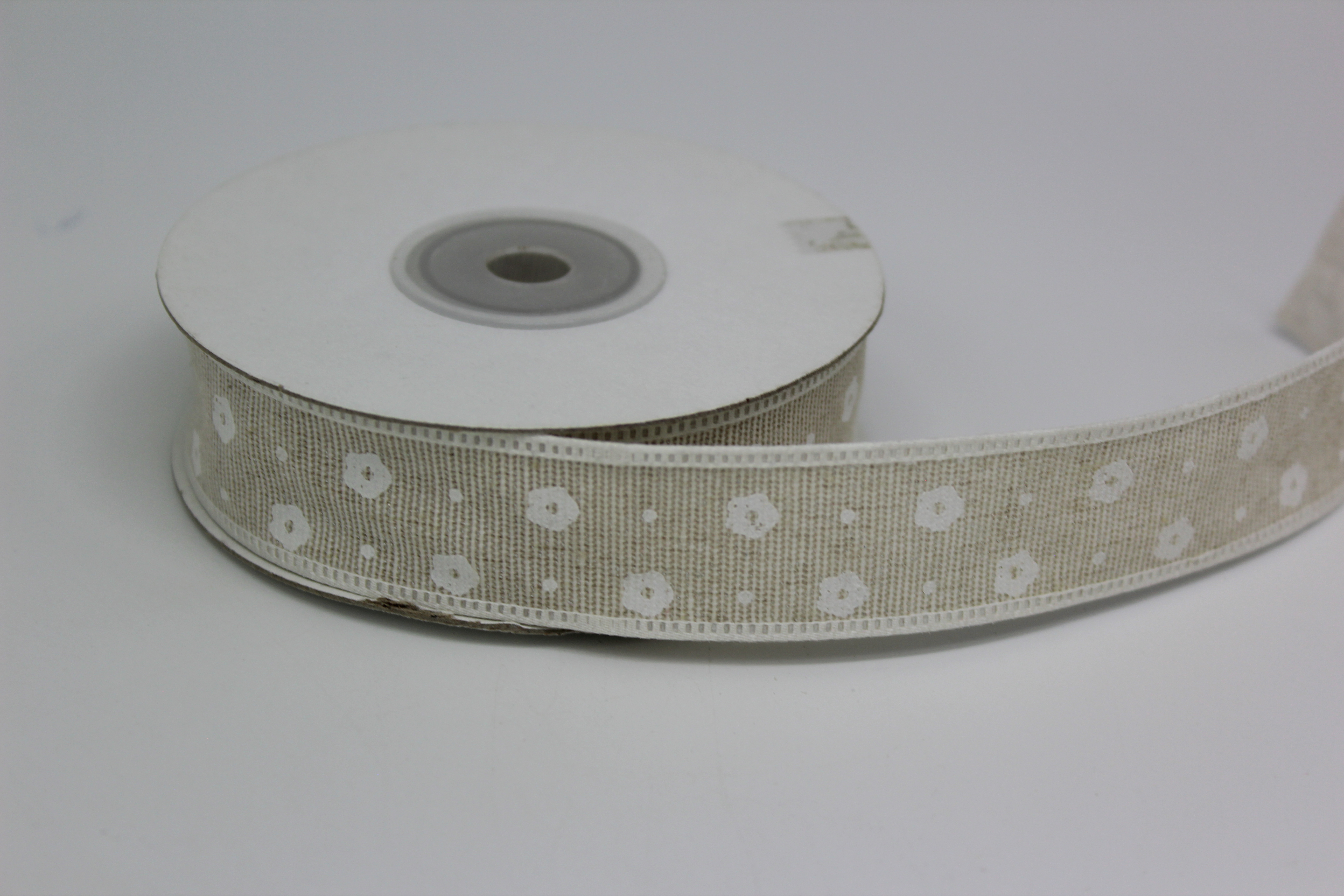 Лента тканевая с кружевной окантовкой 2,5 см 15 ярд "Цветочек" бежевая