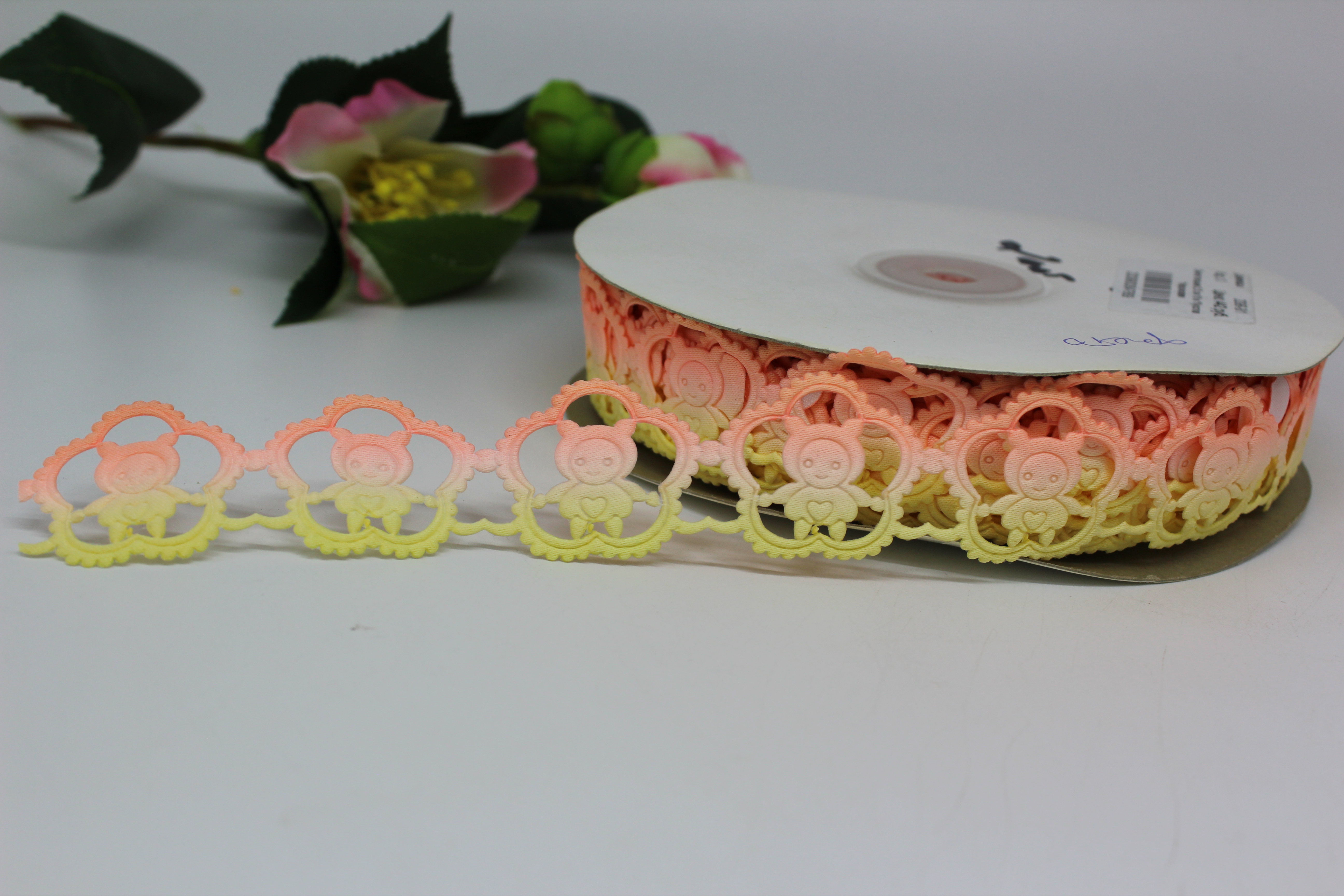 Лента тесьма 2,5 см 18 м "Зайчик" персиково-жёлтая
