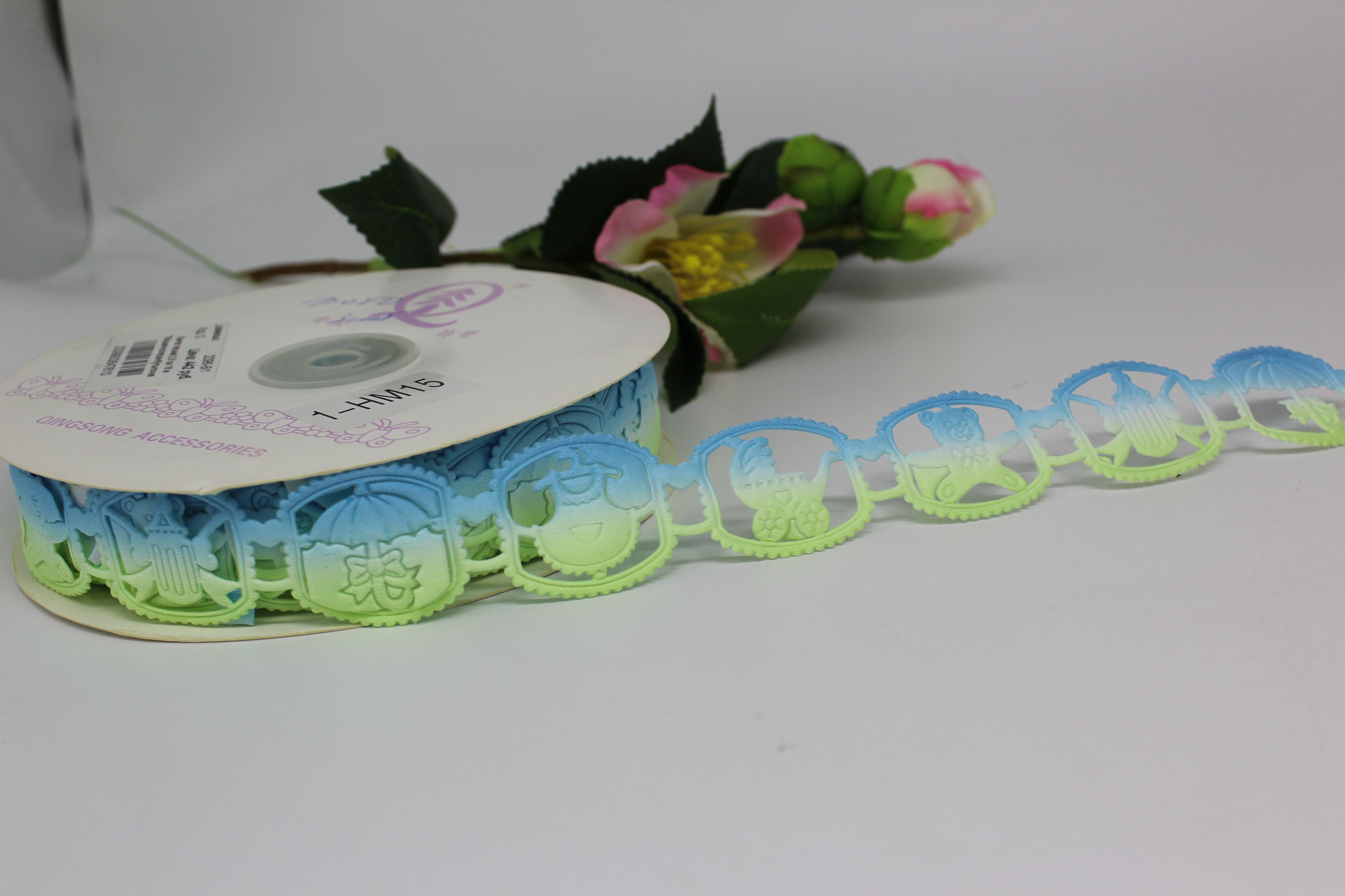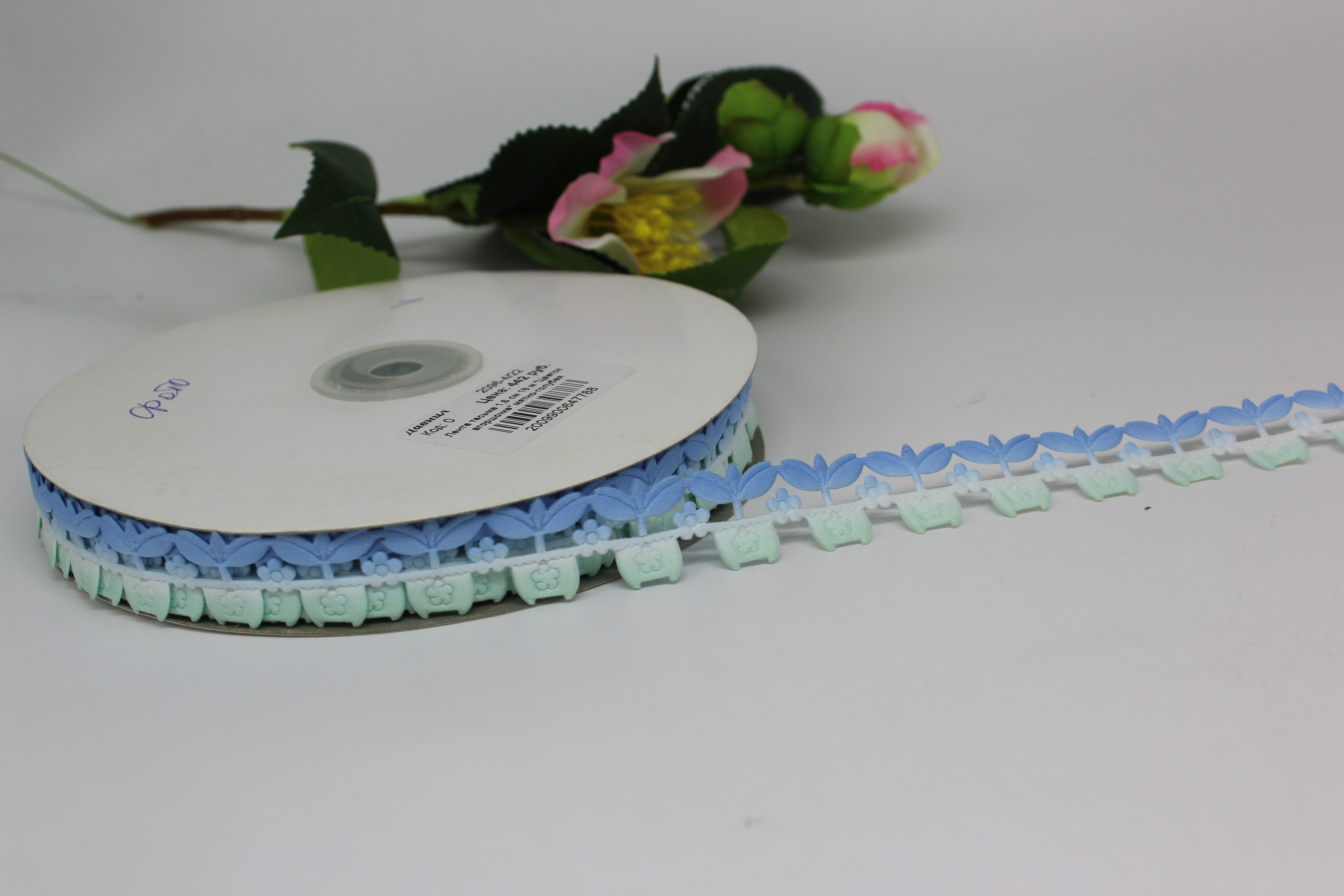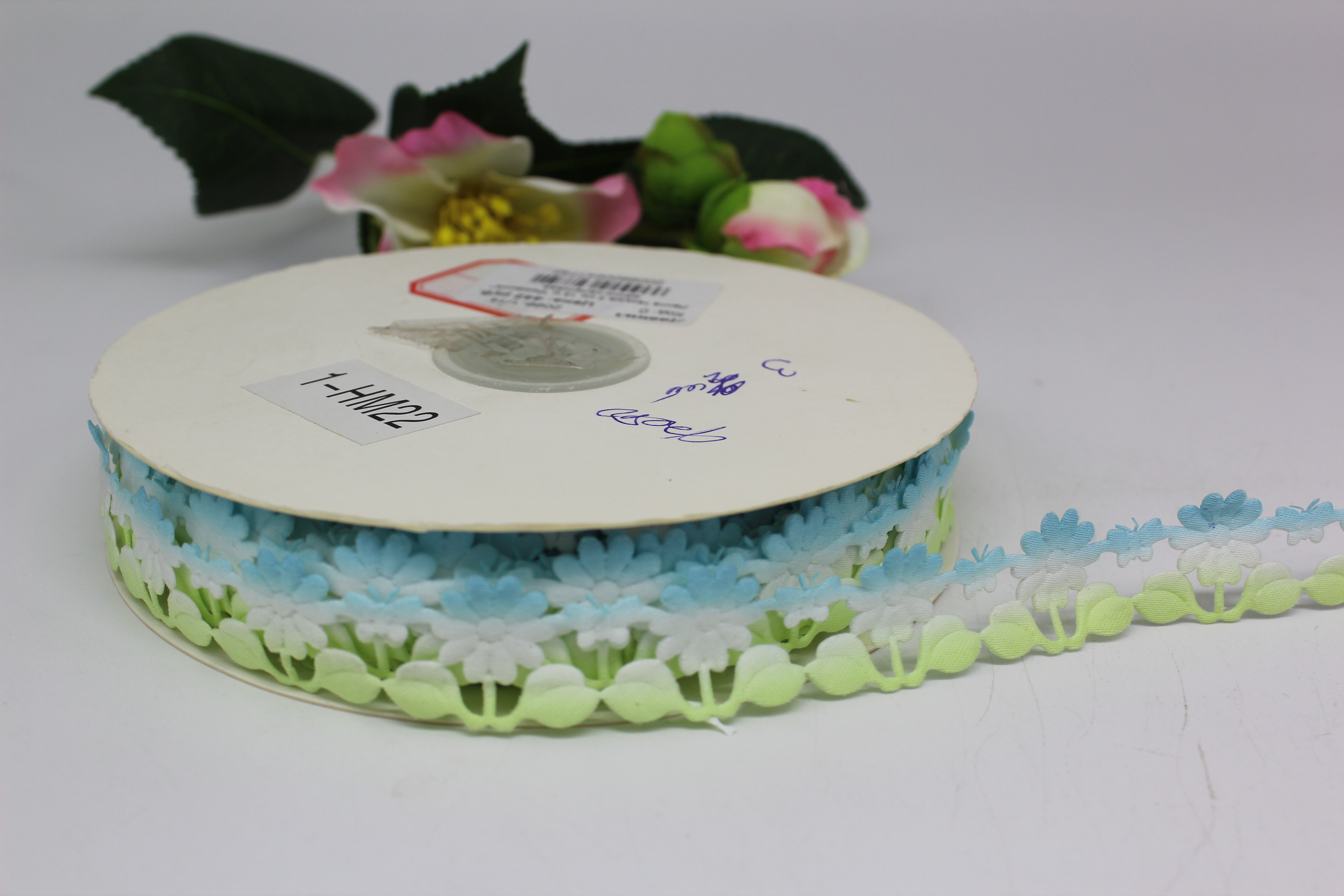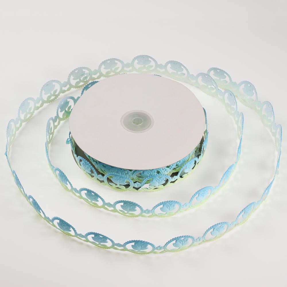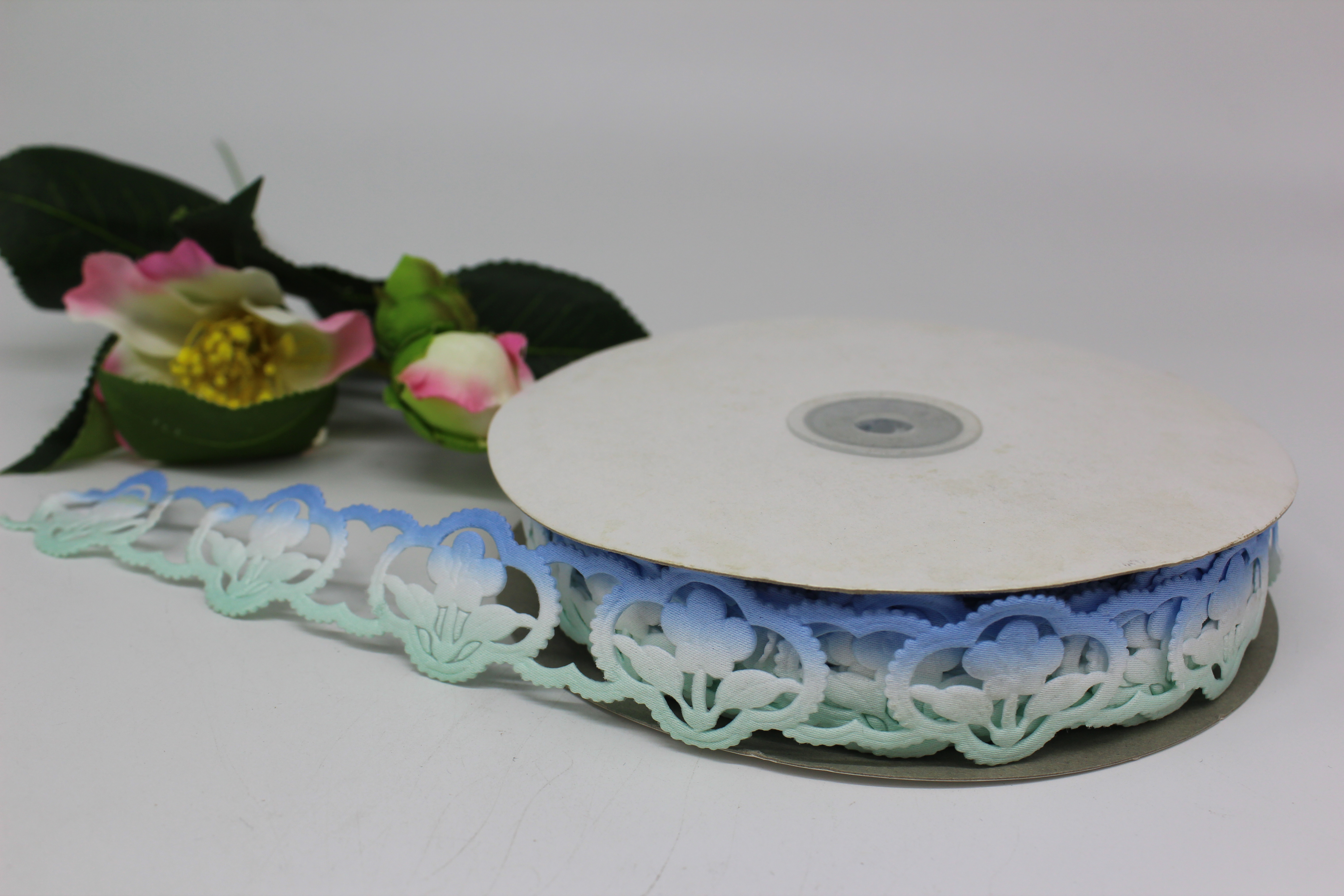 Лента тесьма 2,5 см 18 м "Цветок" салатово-голубой