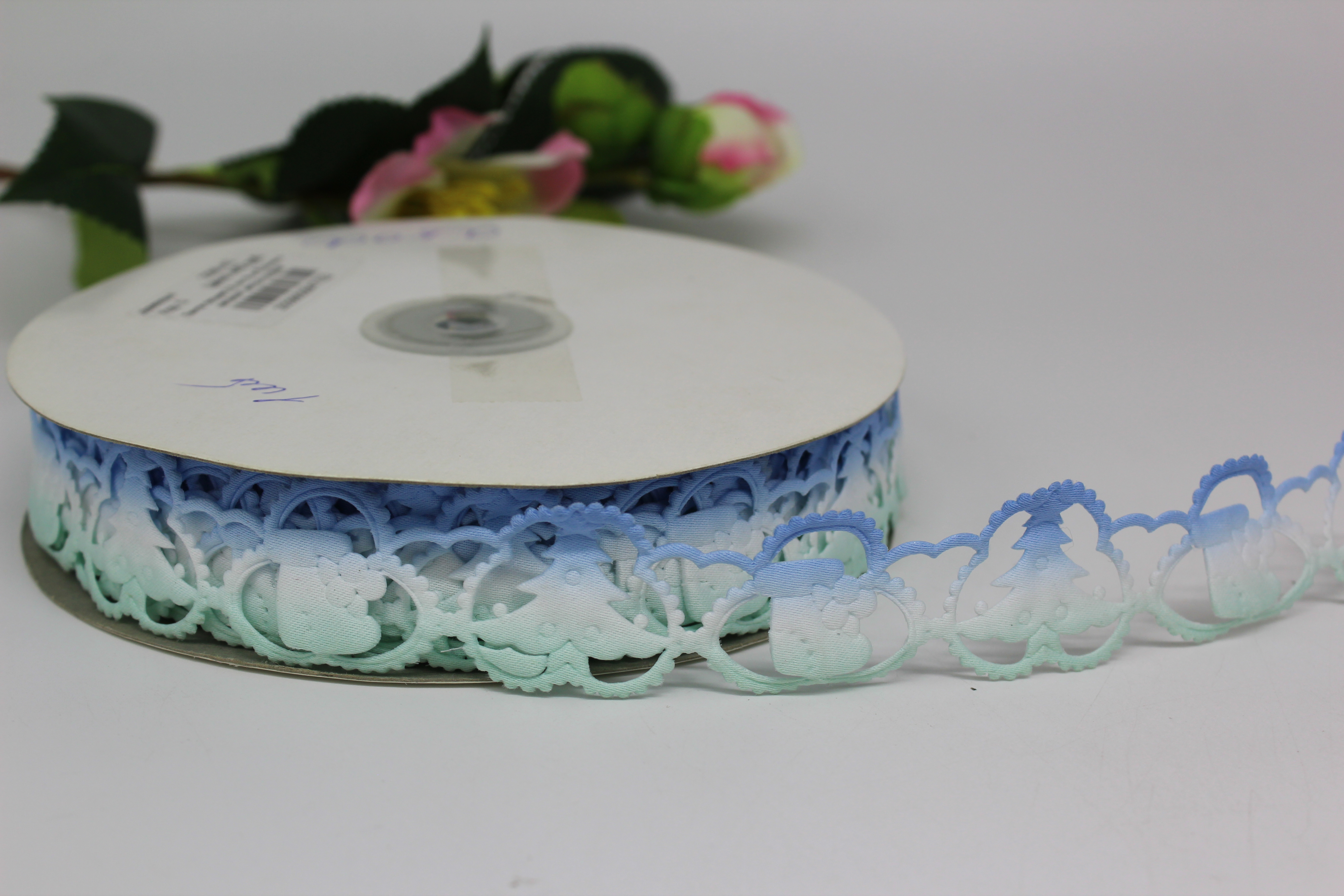 Лента тесьма 2,5 см 18 м "Цветок" голубая