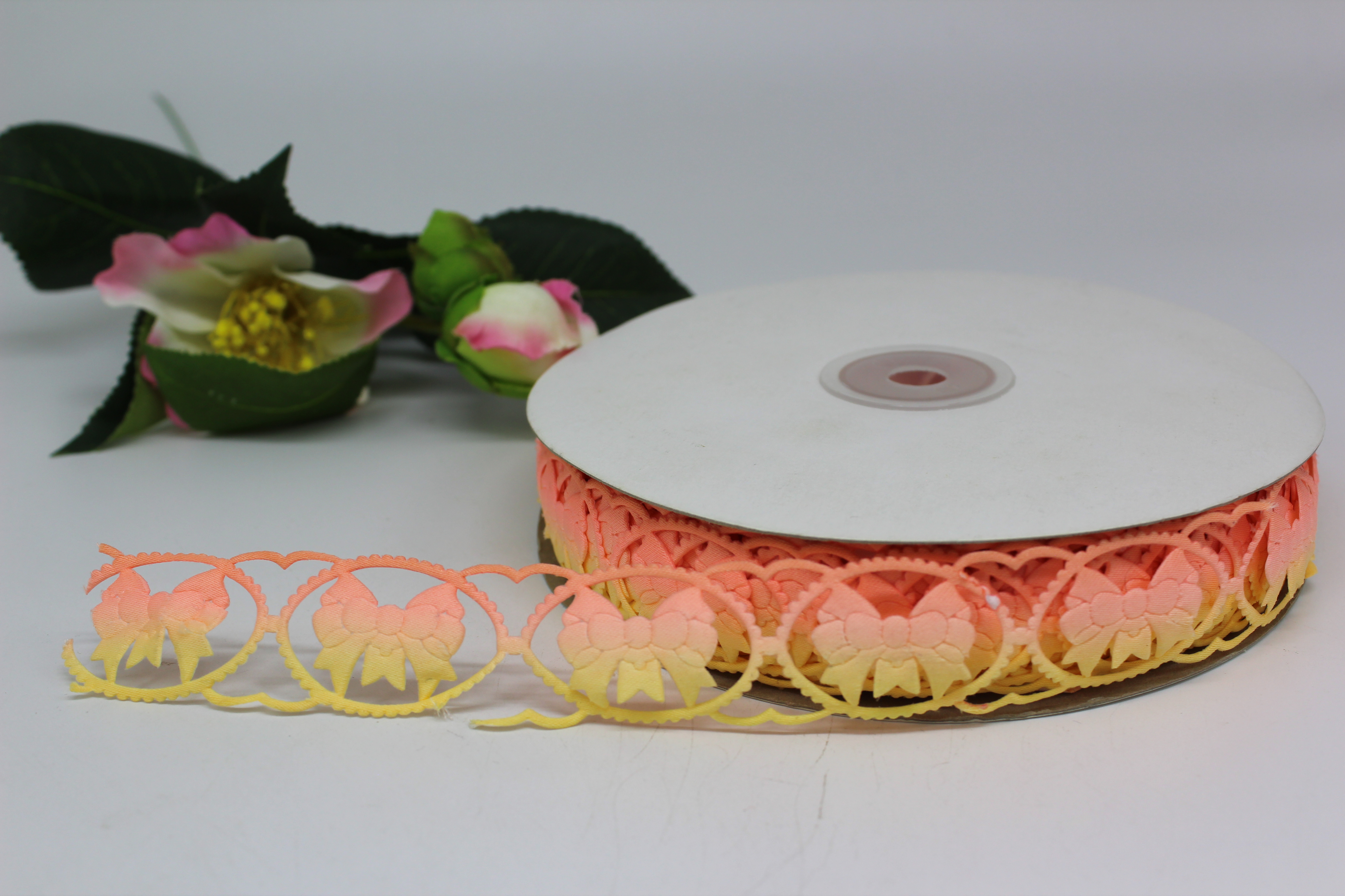 Лента тесьма 2,5 см 18 м "Бантик" персиково-жёлтая