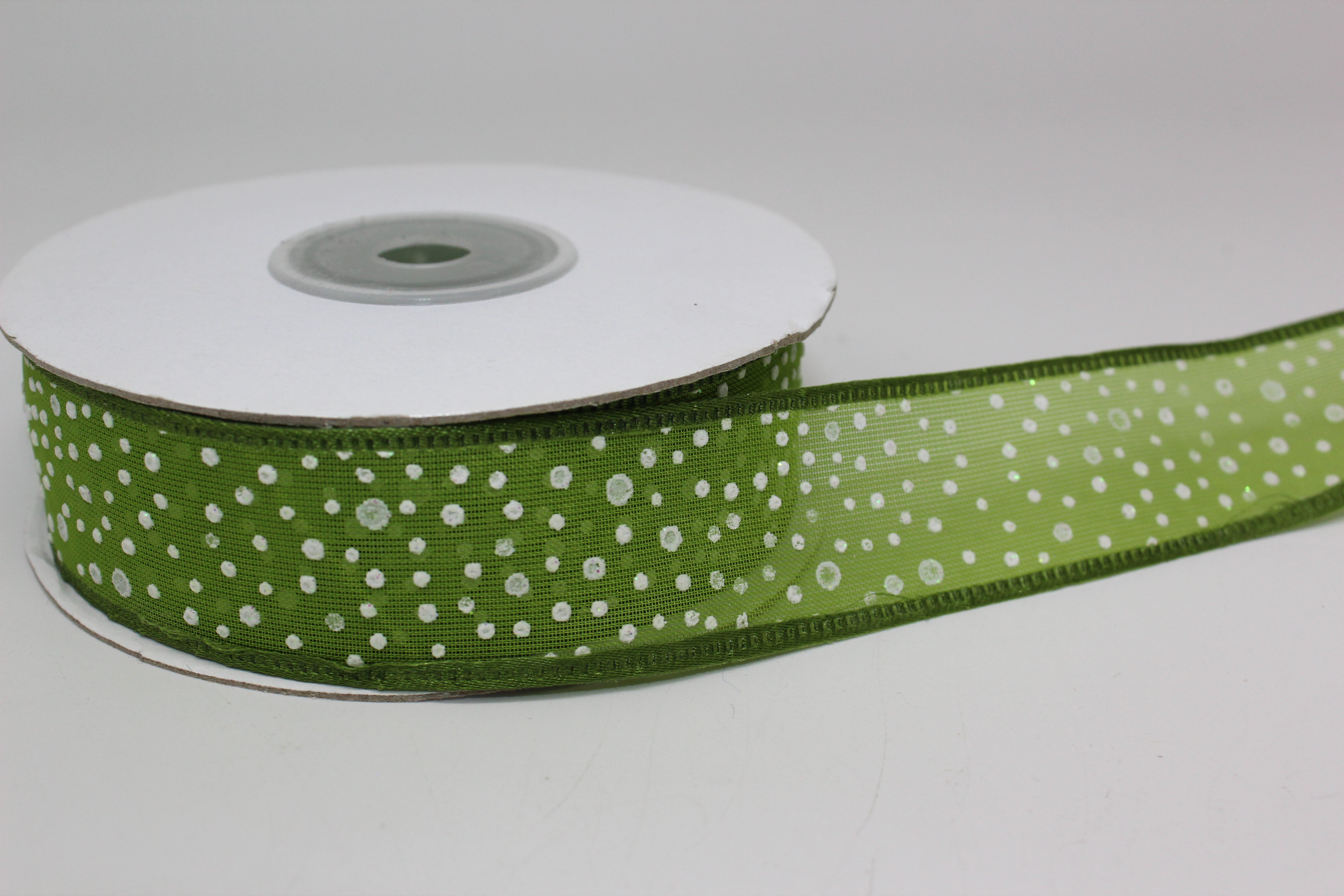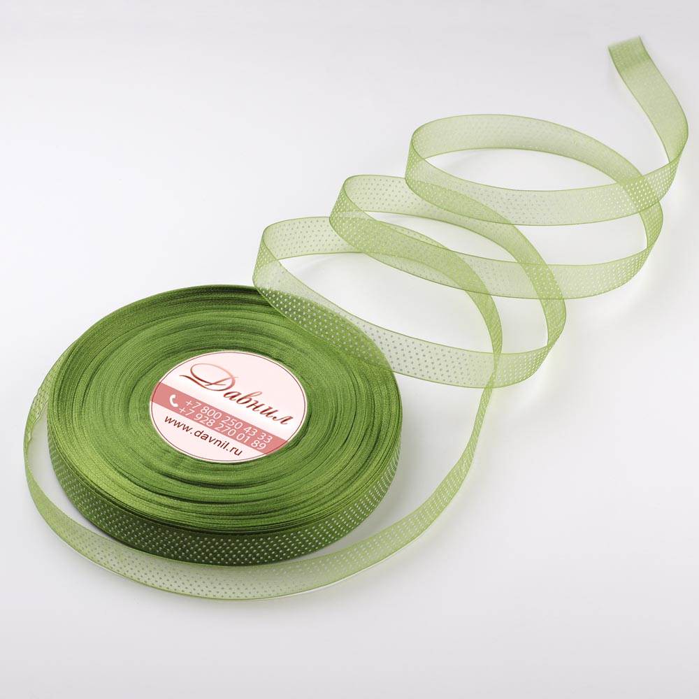 Лента органза в горошек 1,5 см 100 ярдов хаки