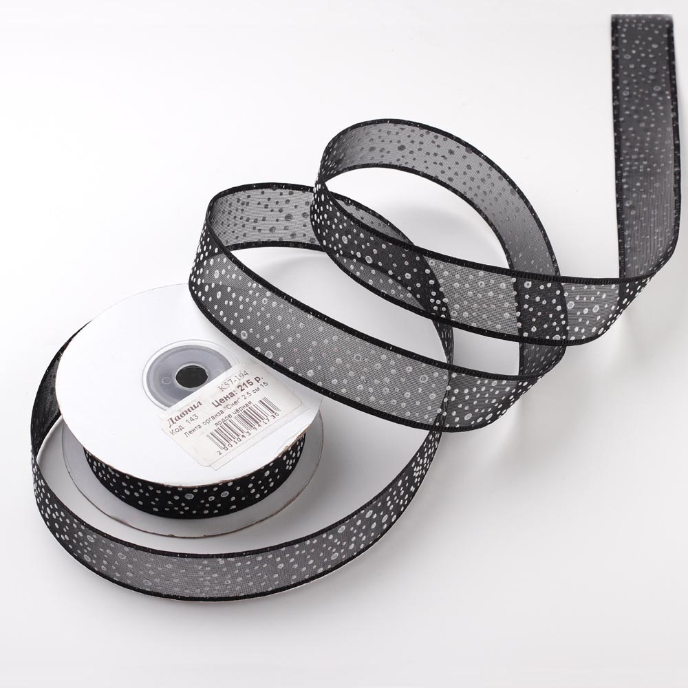 Лента органза "Снег" 2,5 см 15 ярдов чёрная