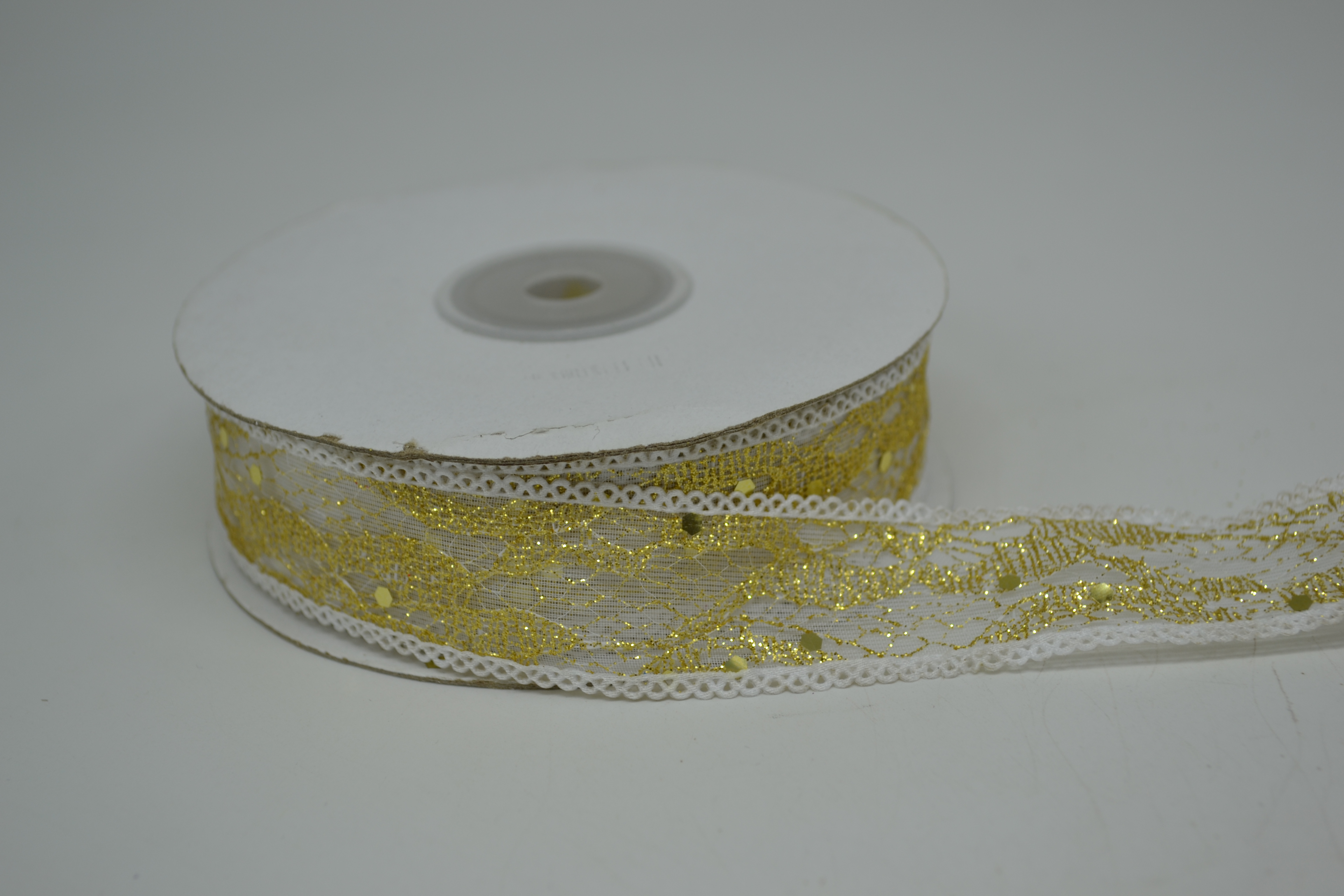 Лента органза с тиснением 2,5 см 15 ярдов золотая