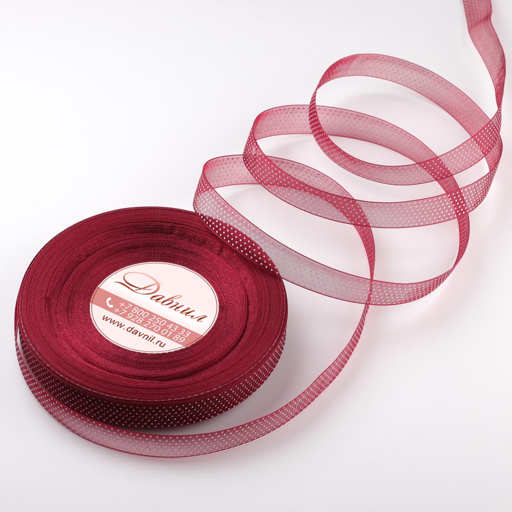 Лента органза в горошек 1,5 см 100 ярдов бордовая